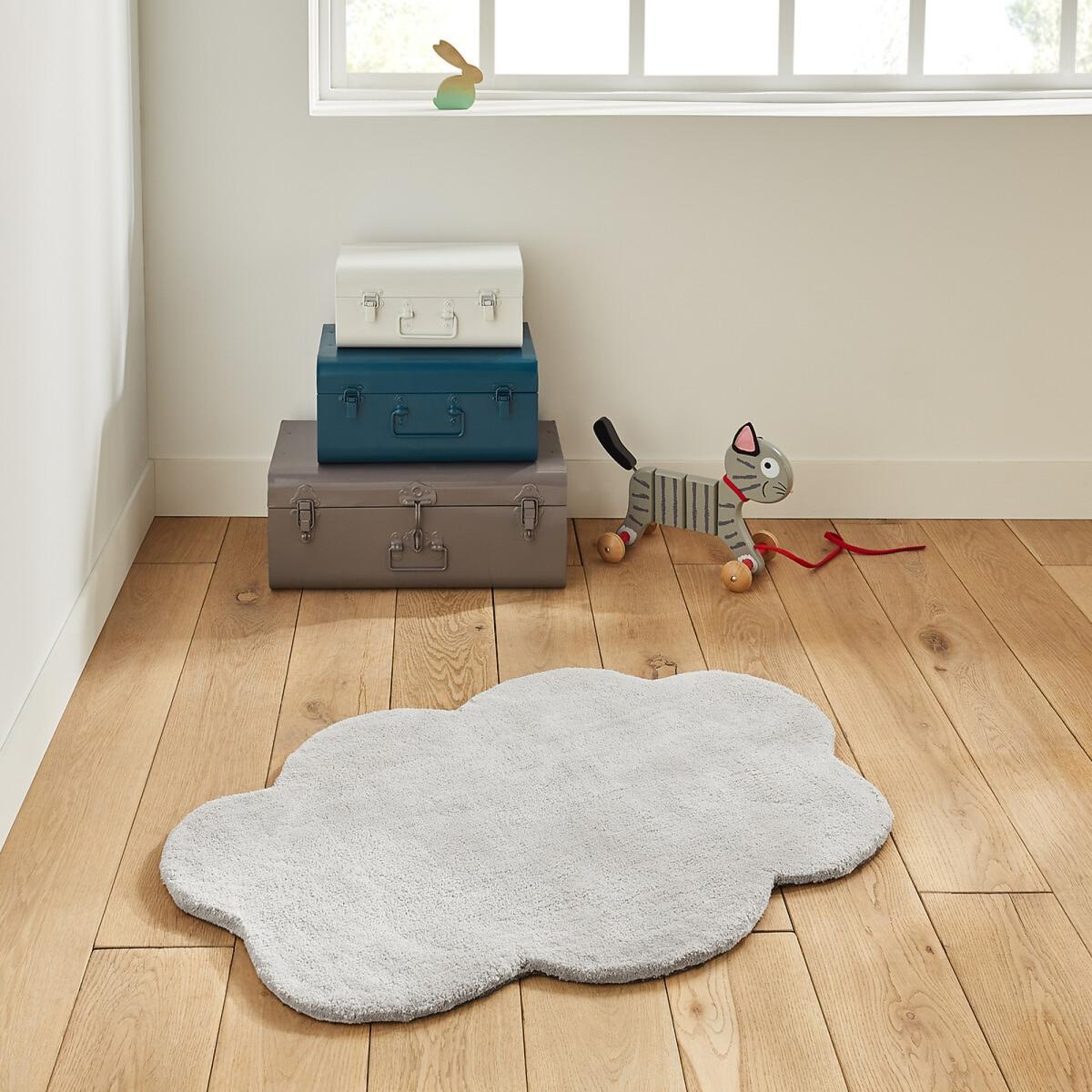 This plush cloud-shaped rug brings a playful softness to your child's room.