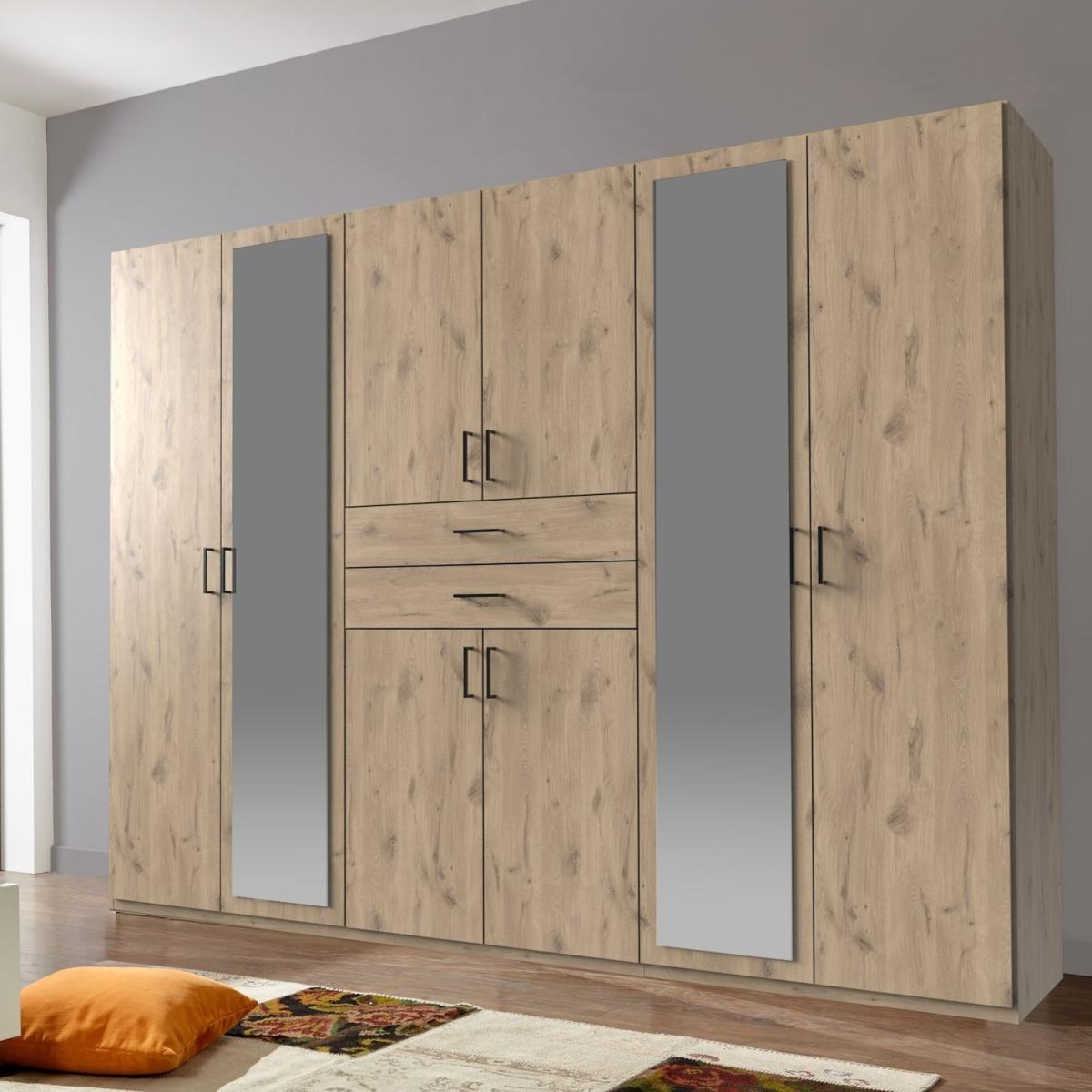 This stylish wardrobe is finished with a mirrored door that not only adds a touch of elegance but also creates an illusion of more space in your room. This wardrobe features trendy handles that complement its contemporary look, making it a standout piece in any modern home. Inside, you will find two hanging rails, perfect for organising your clothes with ease. Additionally, there is a top storage shelf, ideal for keeping items you want to access quickly. To maximise storage, the wardrobe is divided into three sections, offering a total of five shelves. This thoughtful design ensures that you have ample space to neatly store and organise all your belongings. We believe this Wardrobe wardrobe will not only meet but exceed your expectations in both style and practicality. A stylish and practical storage solution for any home, The Dillingen 5 Door or 6 Door Wardrobe combines modern style with functionality. This wardrobe features a Matt smooth finish with hinged doors and a contrasting mirror doors. This space saving design provides ample storage space for all your essentials.