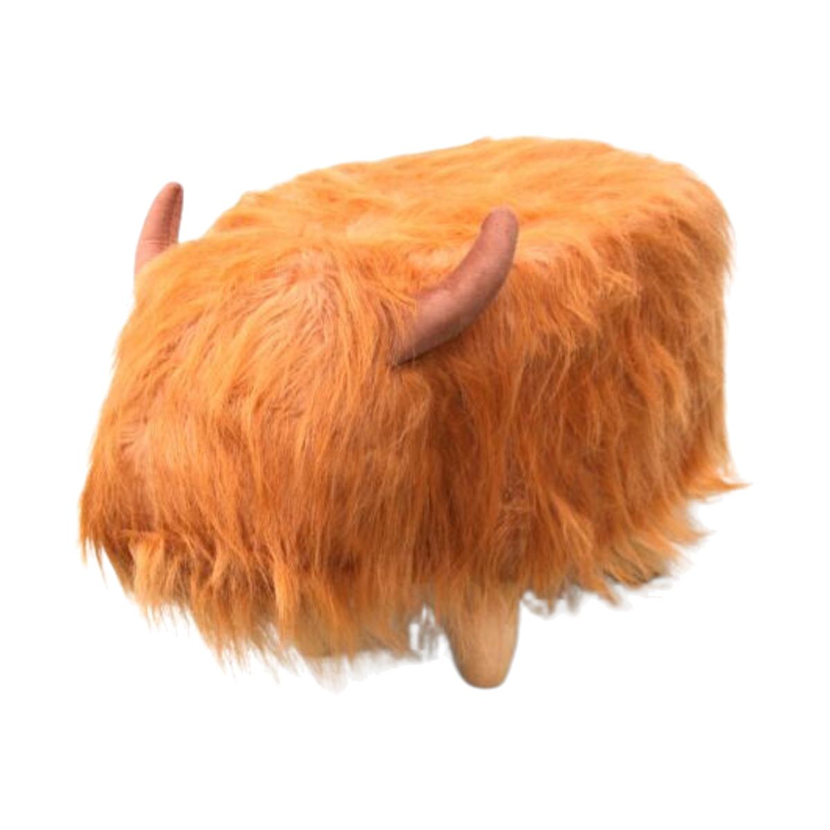 Dillis the Highland Cow Synthetic Fur Footstool With Wooden Legs - Orange