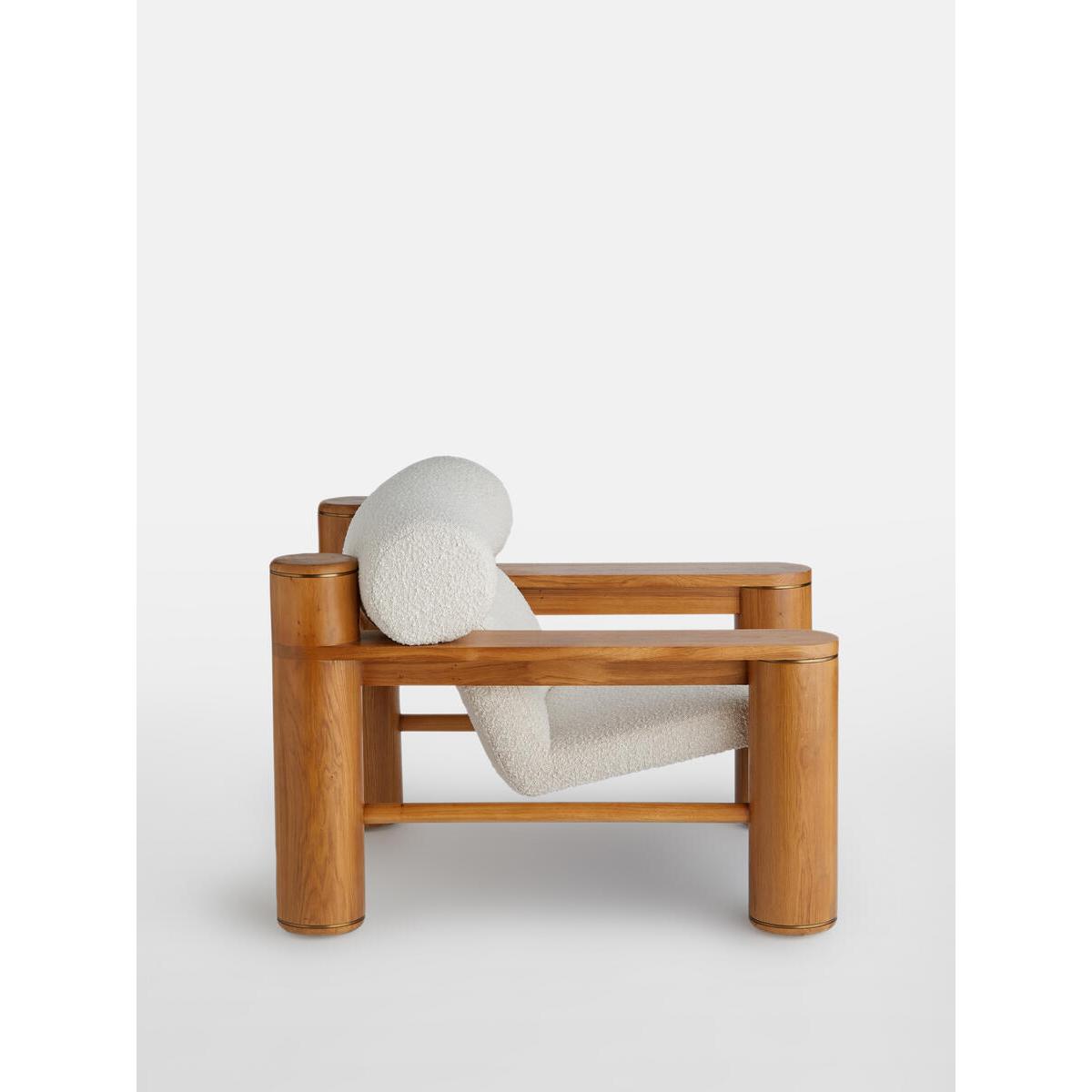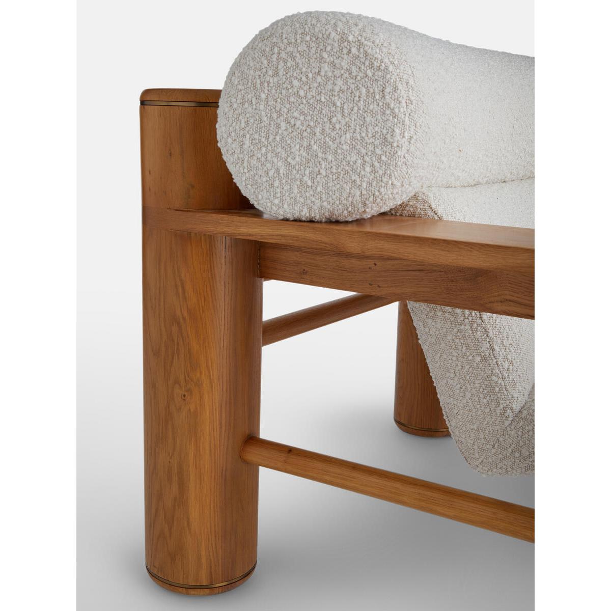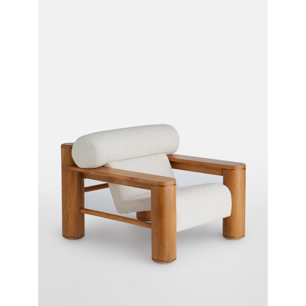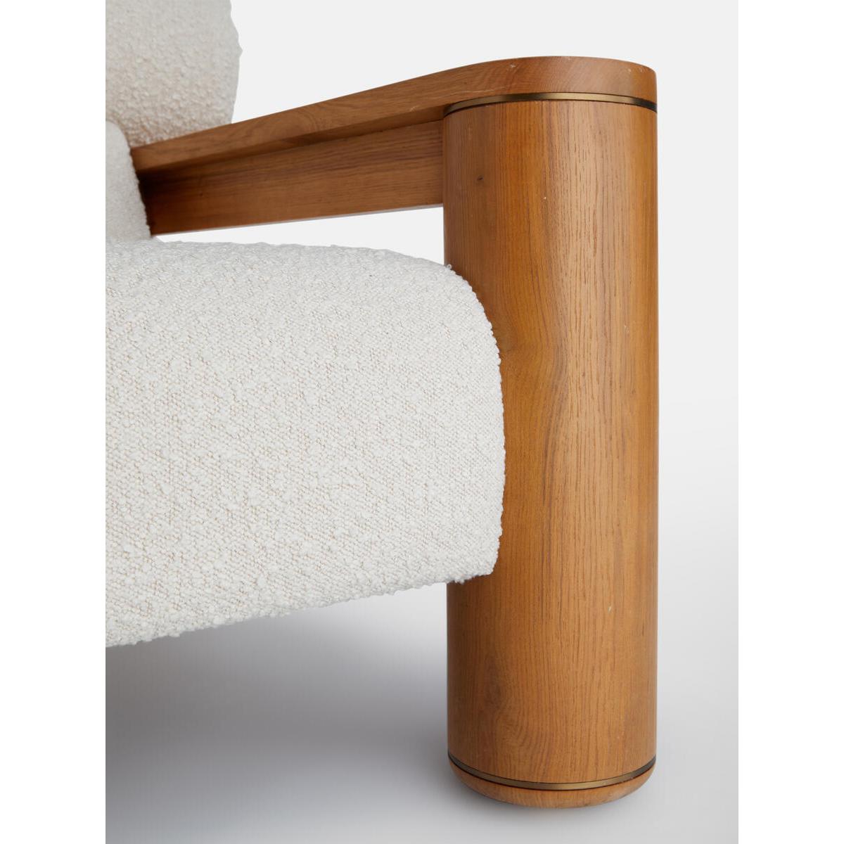 Our Dillon chair is upholstered in boucle fabric and inspired bythe furniture seen throughout Soho House West Hollywood. Asolid-oak frame and brass accents highlight the playful use oftextures, while the distinctive structure makes it suitable forcosy lounging and dining. Boucle chair. Solid-oak frame. Brass accents. Inspired by Soho House West Hollywood.