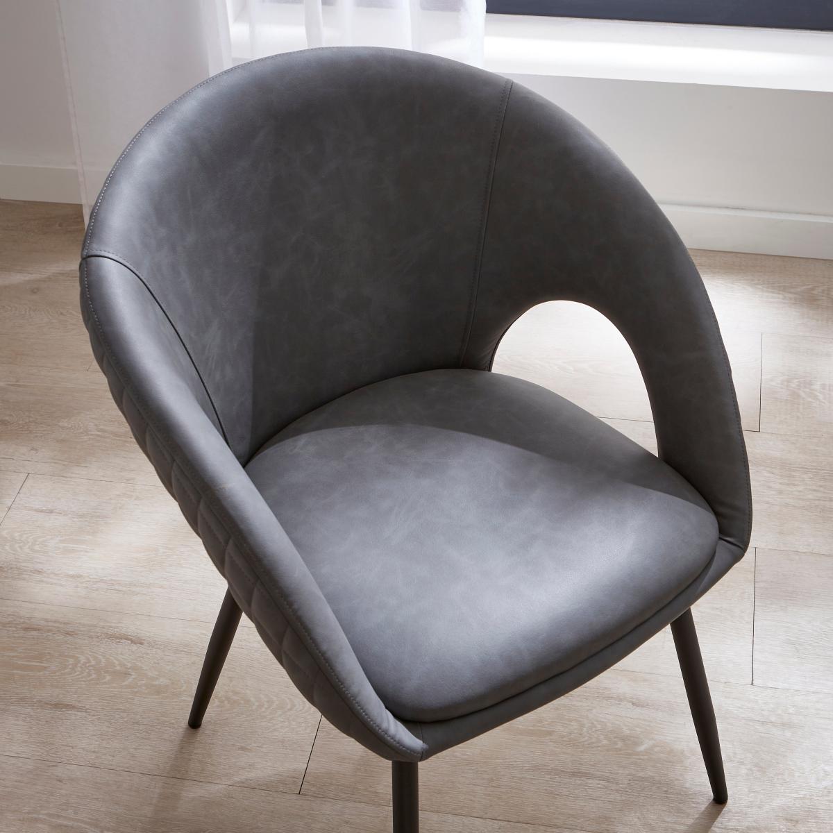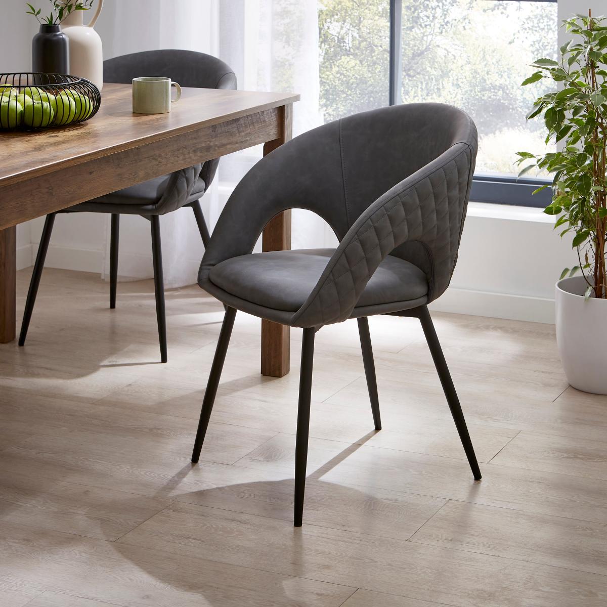 This dining chair is a great choice for modern and contemporary interiors, thanks to its sleek silhouette and faux leather finish. I love its versatile grey tone, which can effortlessly complement both neutral palettes and more colourful schemes. Its comfortable curved back and upholstered seat provide a welcoming feel, while the slim legs keep the look light and refined. Practical styling tips include pairing it with a wooden table for a balance of warmth and texture, or mixing different chair styles for an eclectic vibe. It's also easy to maintain, making it ideal for everyday use. Overall, this chair offers a stylish yet functional option that elevates any dining space.
