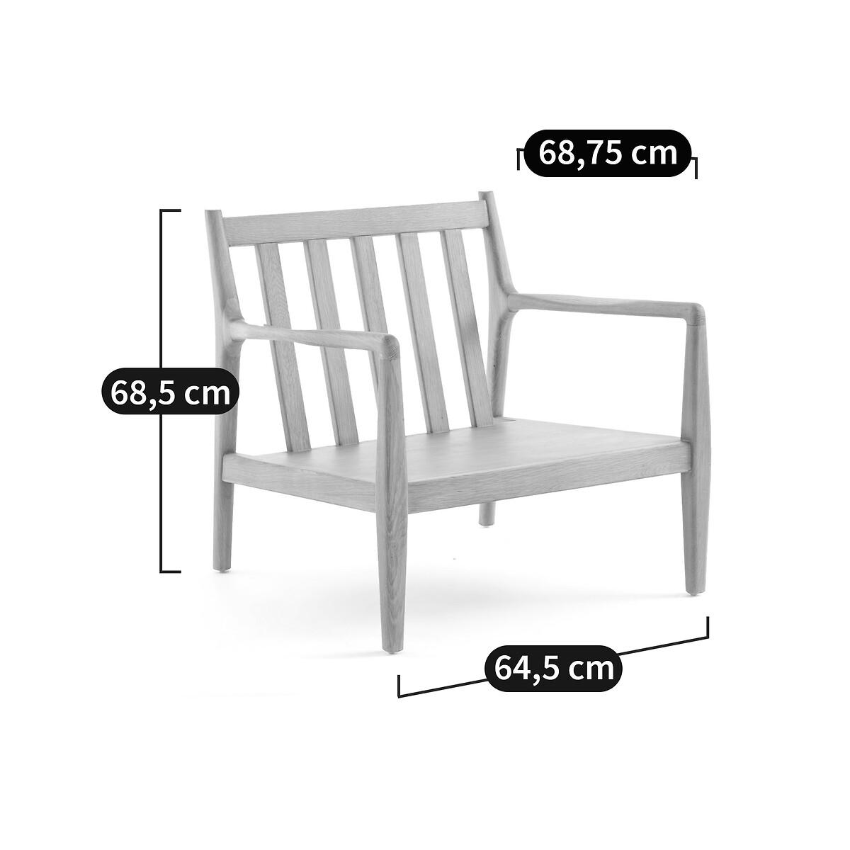 The Dilma armchair frame. A lightweight structure to be chosen from 3 types of wood. Finish it with the Dilma cushions sold on our site. Product Details • Solid oak, walnut or walnut-stained ash • Seat in plywood with oak, walnut or stained ash veneer • FSC® certified wood • Cushions sold separately. Dimensions • Width: 64.5cm • Height: 68.5cm • Depth: 68.7cm • Seat with cushions: L64 x H40 x D48.5cm • Sold pre-assembled. • WOOD FROM SUSTAINABLY MANAGED FORESTS. FSC® certified wood comes from forests that are environmentally, socially and economically well managed. Dimensions and weight of parcel1 parcel • W74 x H74 x D75cm, 15kg