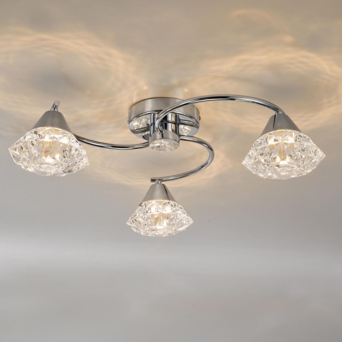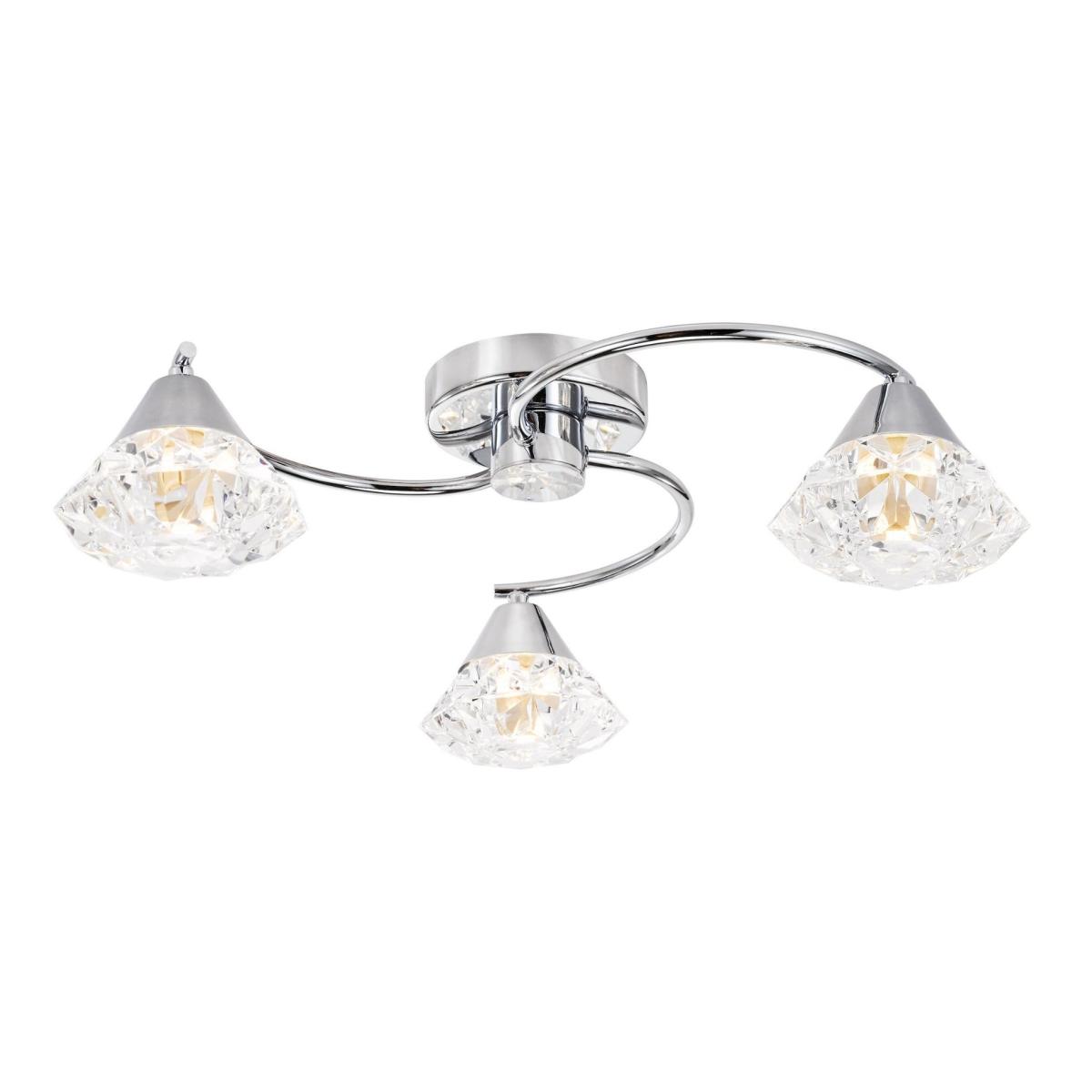 Dilys 3-light semi-flush ceiling light, featuring acrylic crystal-effect shades and a polished chrome finish. The Dilys semi-flush ceiling light brings a harmonious blend of elegance and modern design to your interiors. It features three gracefully sweeping arms that radiate from the centre, adding a sense of movement and sophistication to its structure. Each arm supports a crystal-effect shade, designed to refract light beautifully, creating a warm and inviting ambiance in any room. Crafted with a polished chrome finish, this ceiling light exudes contemporary charm while offering durability and a timeless aesthetic. Its semi-flush design makes it a perfect fit for rooms with lower ceilings, while still providing a striking decorative feature. Dilys 3-light semi-flush ceiling light, featuring acrylic crystal-effect shades and a polished chrome finish. The Dilys semi-flush ceiling light brings a harmonious blend of elegance and modern design to your interiors. It features three gracefully sweeping arms that radiate from the centre, adding a sense of movement and sophistication to its structure. Each arm supports a crystal-effect shade, designed to refract light beautifully, creating a warm and inviting ambiance in any room. Crafted with a polished chrome finish, this ceiling light exudes contemporary charm while offering durability and a timeless aesthetic. Its semi-flush design makes it a perfect fit for rooms with lower ceilings, while still providing a striking decorative feature.