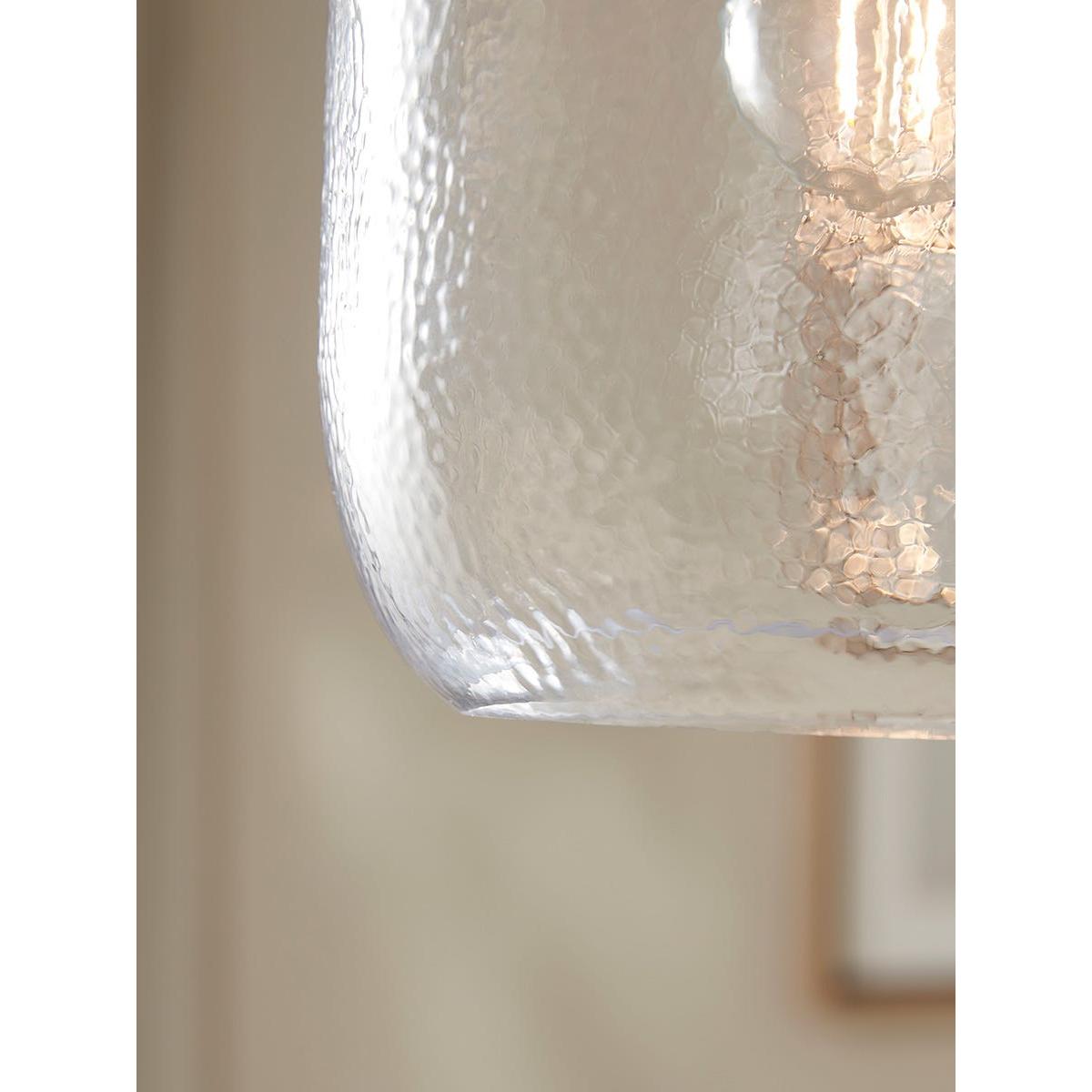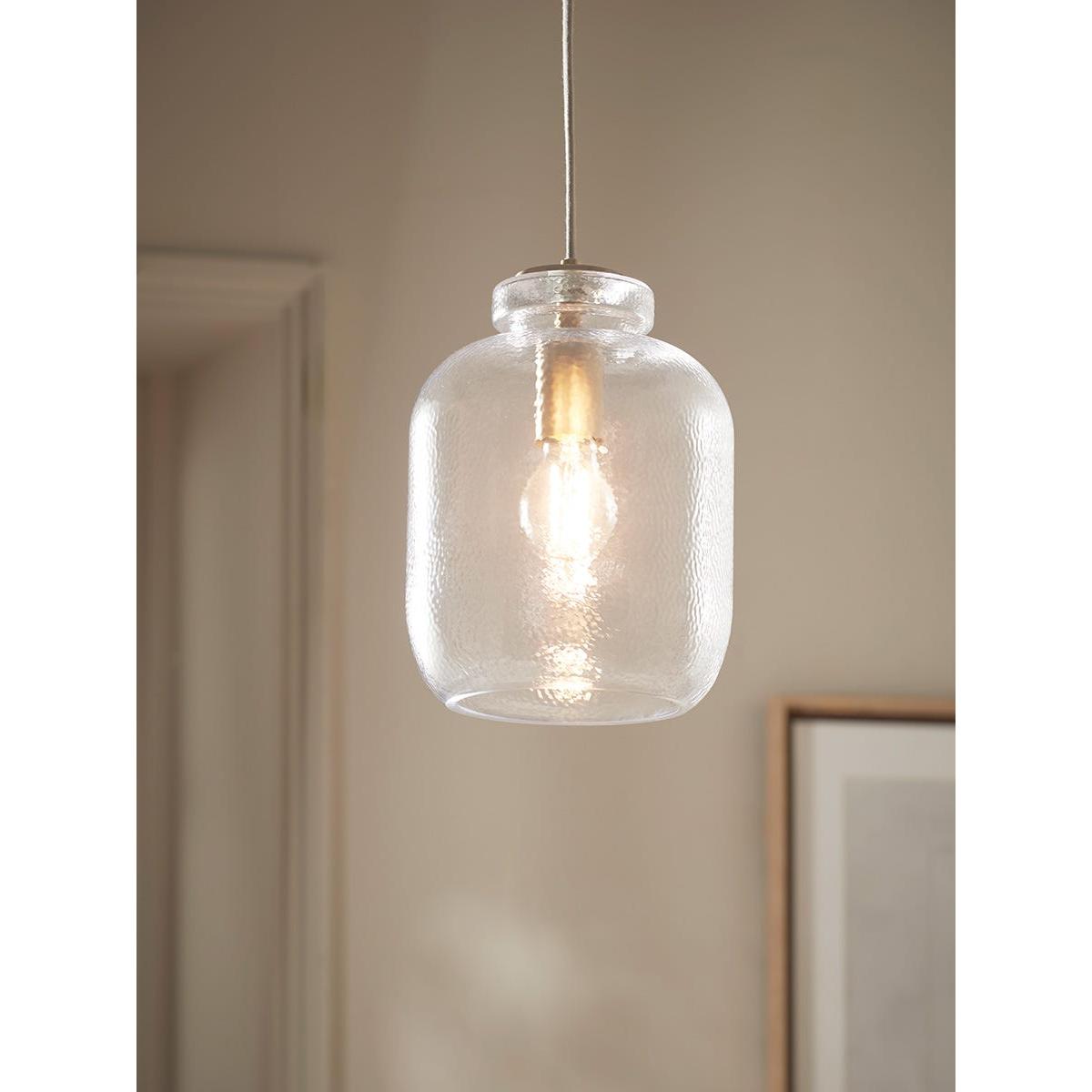 I love this hanging light because of its simple yet textured design - the dimpled glass adds subtle visual interest without overpowering a space. It works particularly well in kitchens, dining areas or cosy living rooms with a relaxed or contemporary aesthetic. Practical styling tips include pairing it with sleek, minimal furniture to let the glass feature shine or using it in groups over a kitchen island for a modern rustic touch. It's a versatile piece that can complement both neutral colour palettes and more colourful or patterned interiors, making it a great all-rounder for adding a touch of understated elegance.