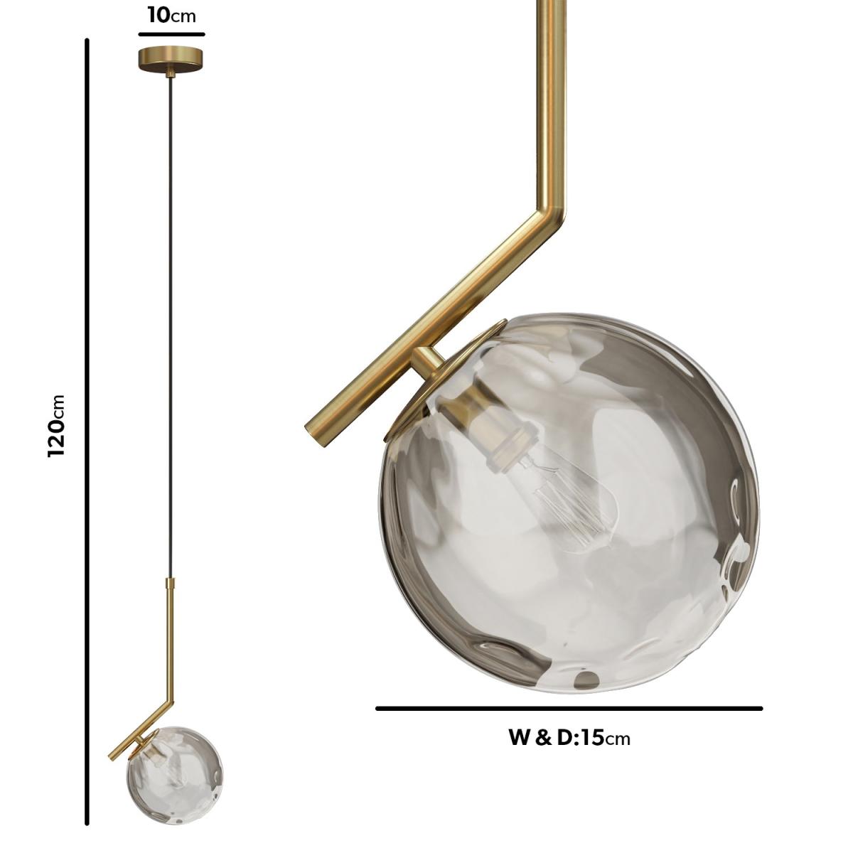 Dimpled Smoked Glass Pendant Ceiling Light with Gold Finish - Salerno