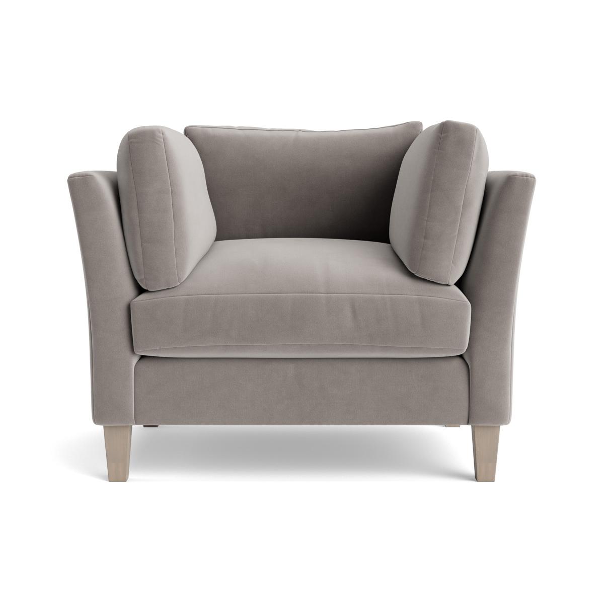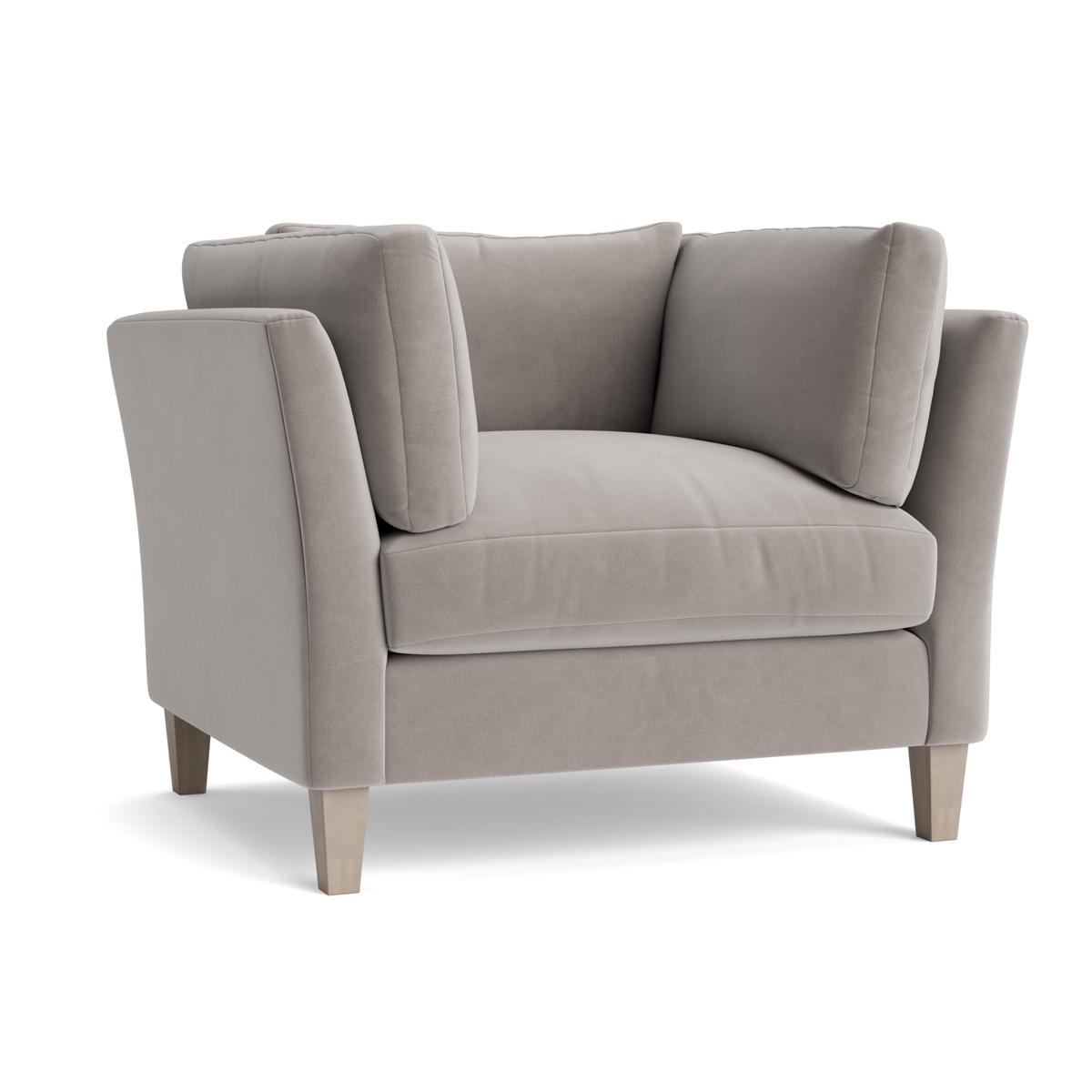 The combination of high frame and cushion surround gives the Dinan loveseat its supportive seating position, making it perfect for more structured living room layouts, while the wedge shaped solid oak feet add a contemporary flourish. The Dinan range also includes a two seater and a three seater sofa and an ottoman. Pictured here in our Dove velvet, our Dinan collection can be upholstered in a choice of 34 distinctive shades and six fabrics to suit your style. Read our Upholstery FAQs View our full Upholstery Terms and Conditions
