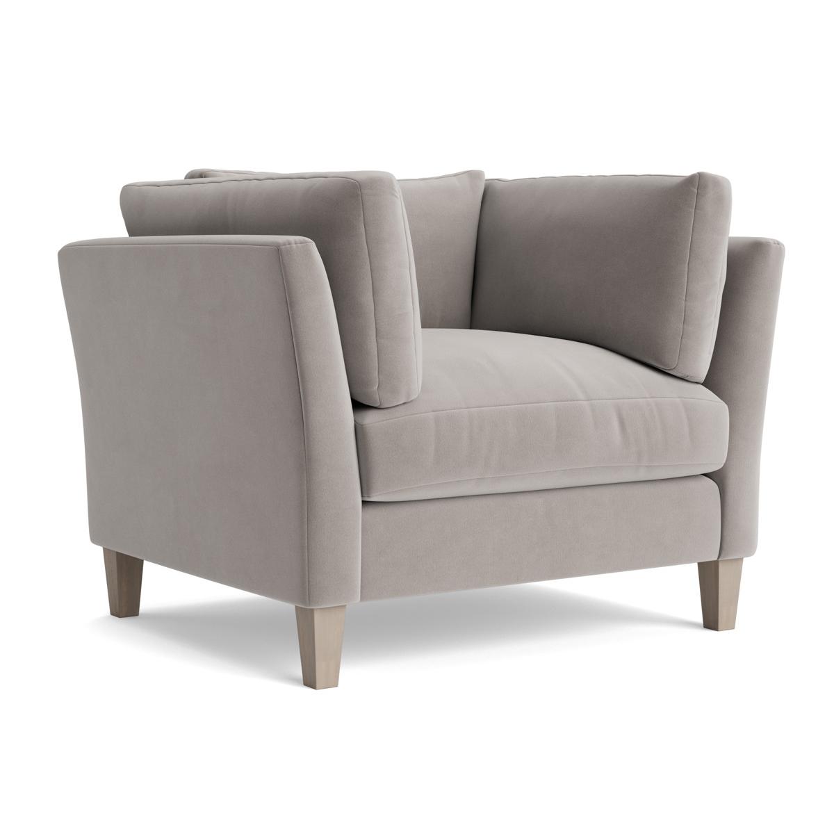 The combination of high frame and cushion surround gives the Dinan loveseat its supportive seating position, making it perfect for more structured living room layouts, while the wedge shaped solid oak feet add a contemporary flourish. The Dinan range also includes a two seater and a three seater sofa and an ottoman. Pictured here in our Dove velvet, our Dinan collection can be upholstered in a choice of 34 distinctive shades and six fabrics to suit your style. Read our Upholstery FAQs View our full Upholstery Terms and Conditions