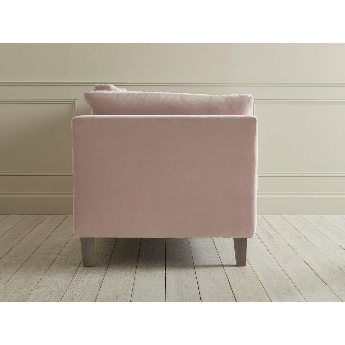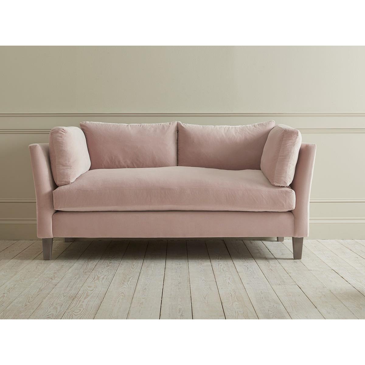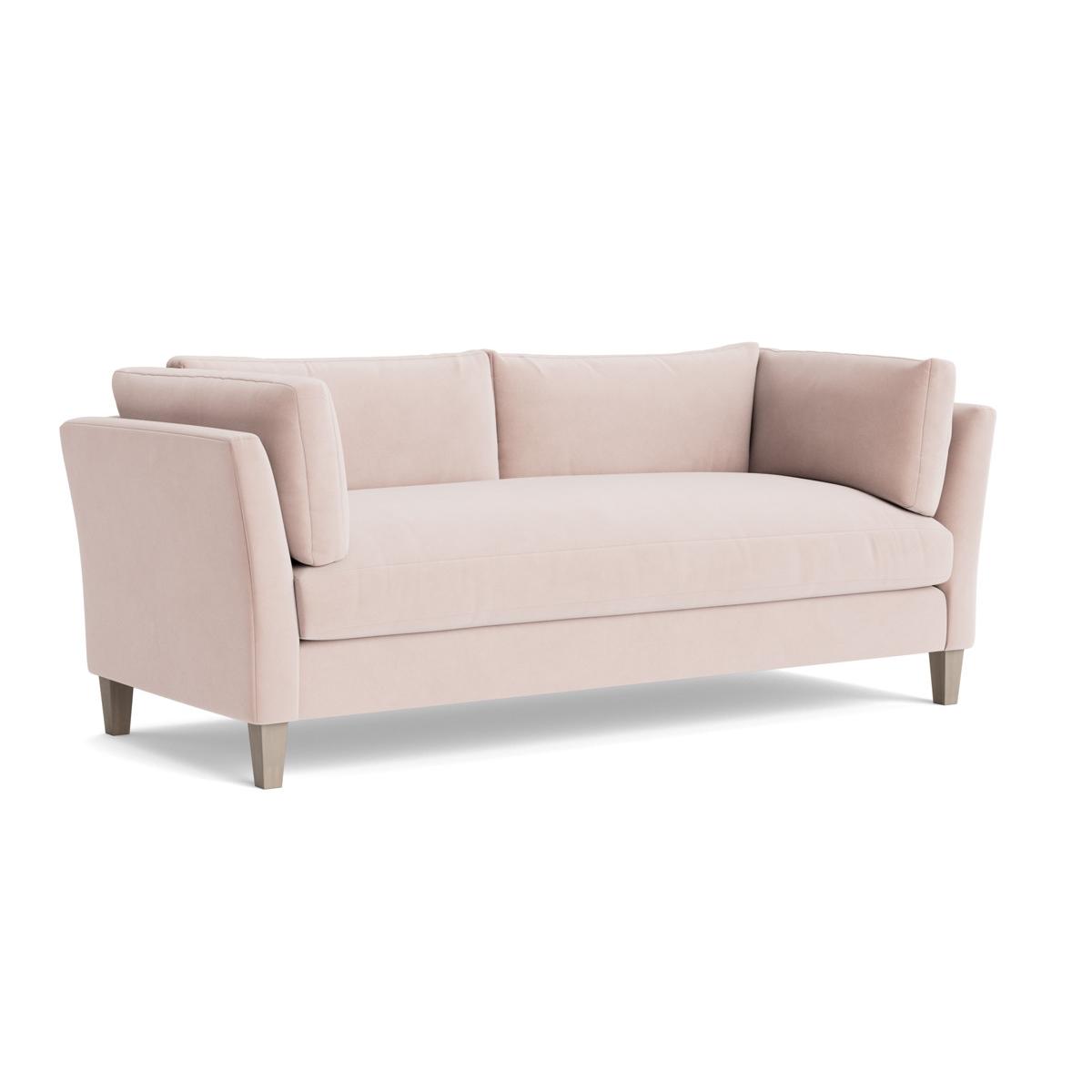 The combination of high frame and cushion surround gives the Dinan sofa its supportive seating position, making it perfect for more structured living room layouts, while the wedge shaped solid oak feet add a contemporary flourish. The Dinan range also includes a loveseat and an ottoman. Pictured here in our Vintage Rose velvet, our Dinan collection can be upholstered in a choice of 34 distinctive shades and six fabrics to suit your style. Read our Upholstery FAQs View our full Upholstery Terms and Conditions