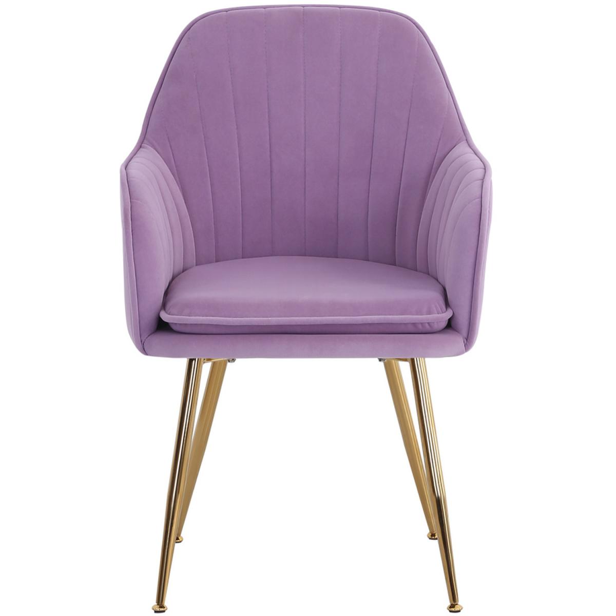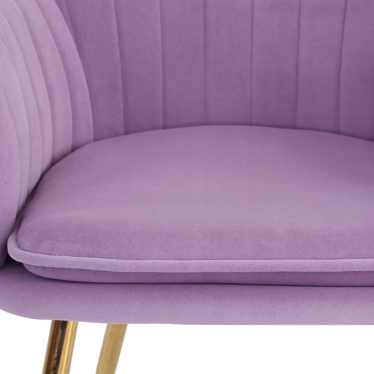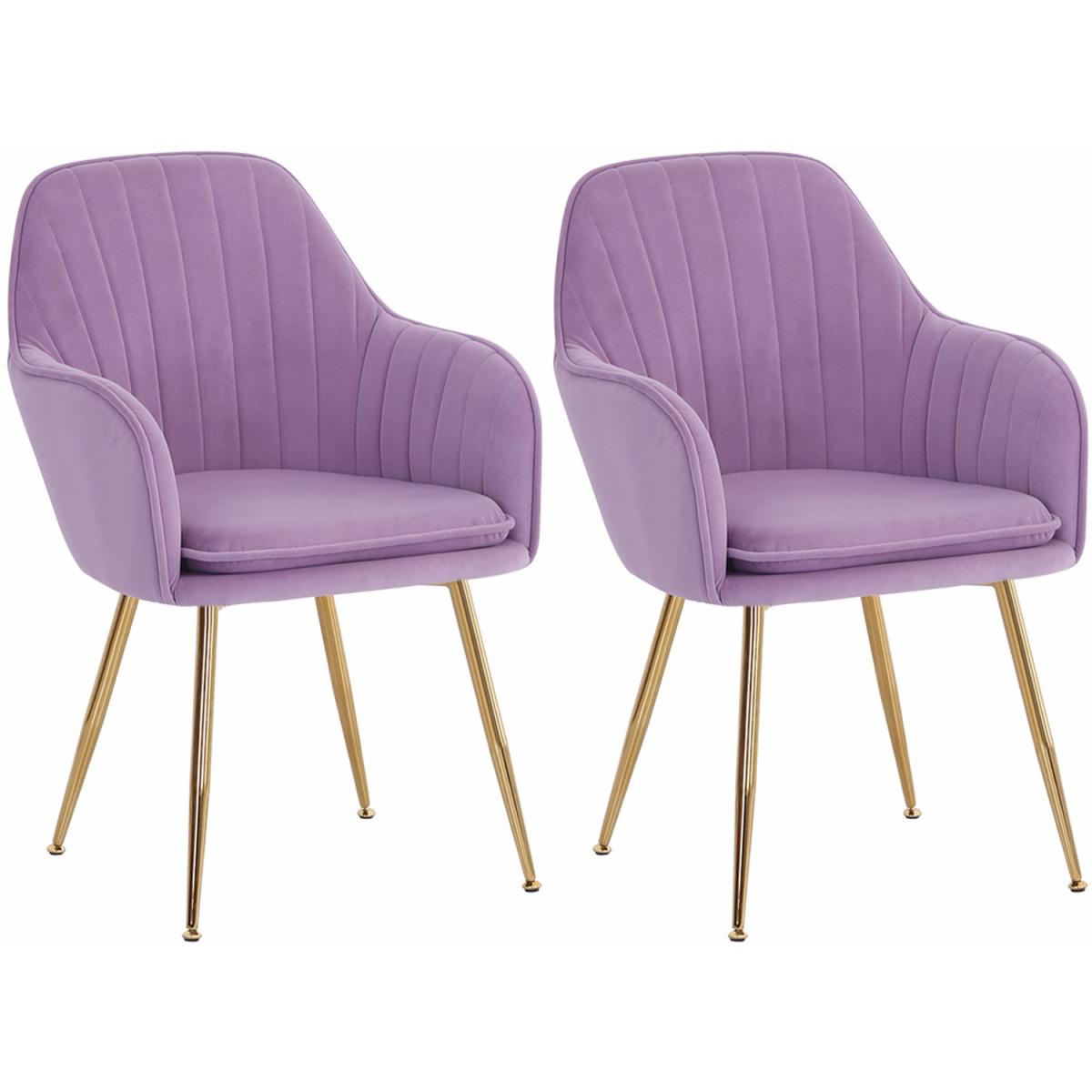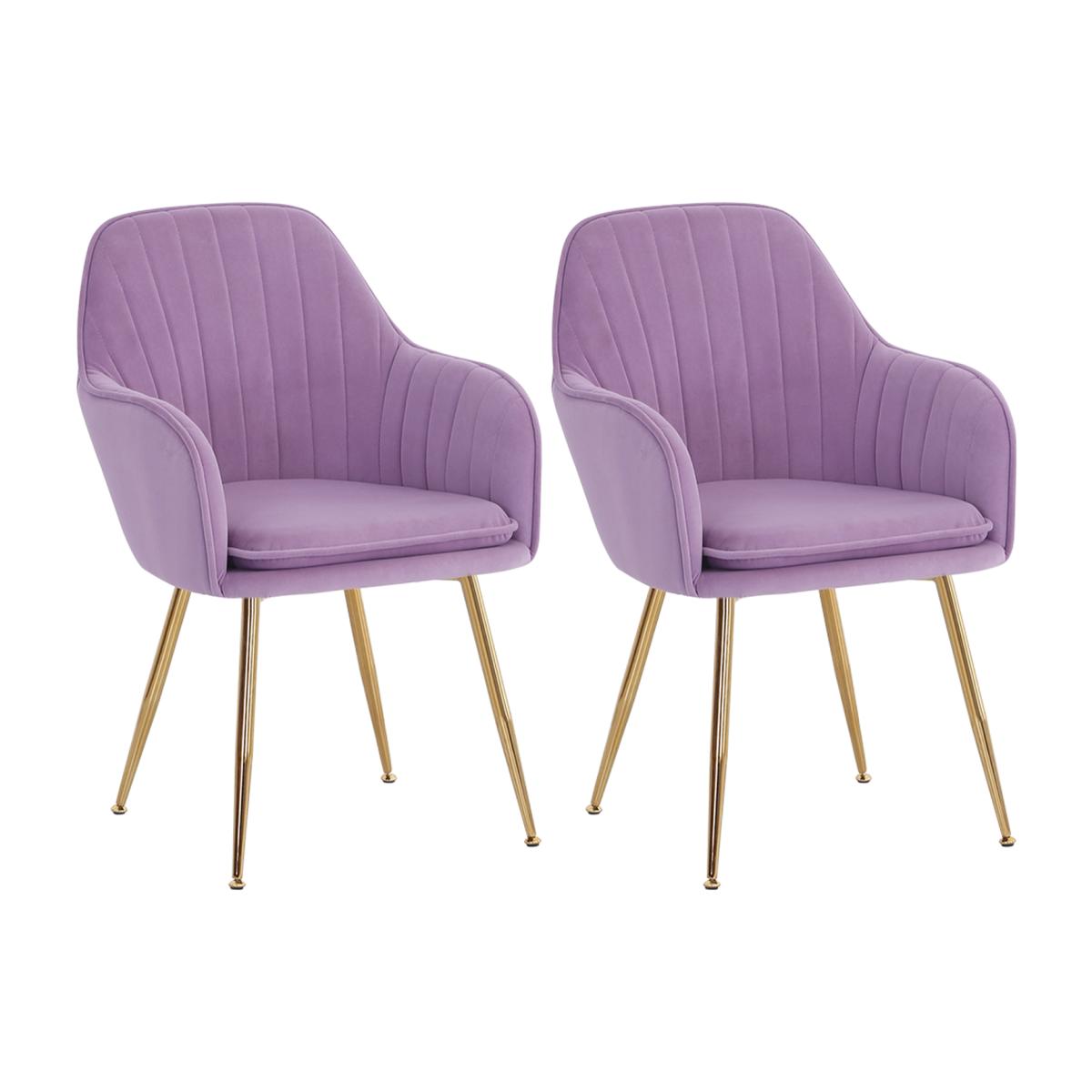 This set of dining Room Chairs features clean lines combined with a modern look. It's upholstered in light purple velvet fabric and filled with high density foam, which offers a comfortable seating experience. It is completed with metal legs equipped with plastic floor protectors to protect floors from damage, which is a real eye-catcher and enhances every room, whether dining room, living room or kitchen.