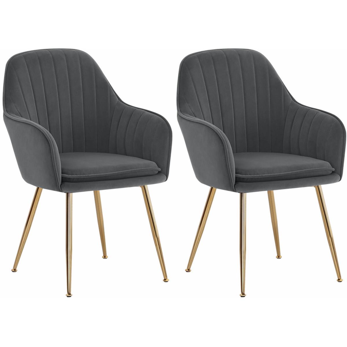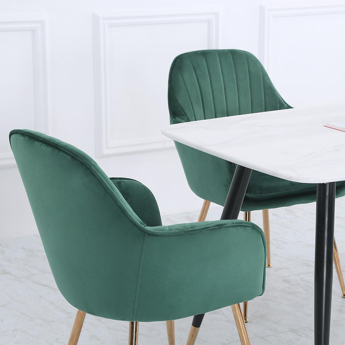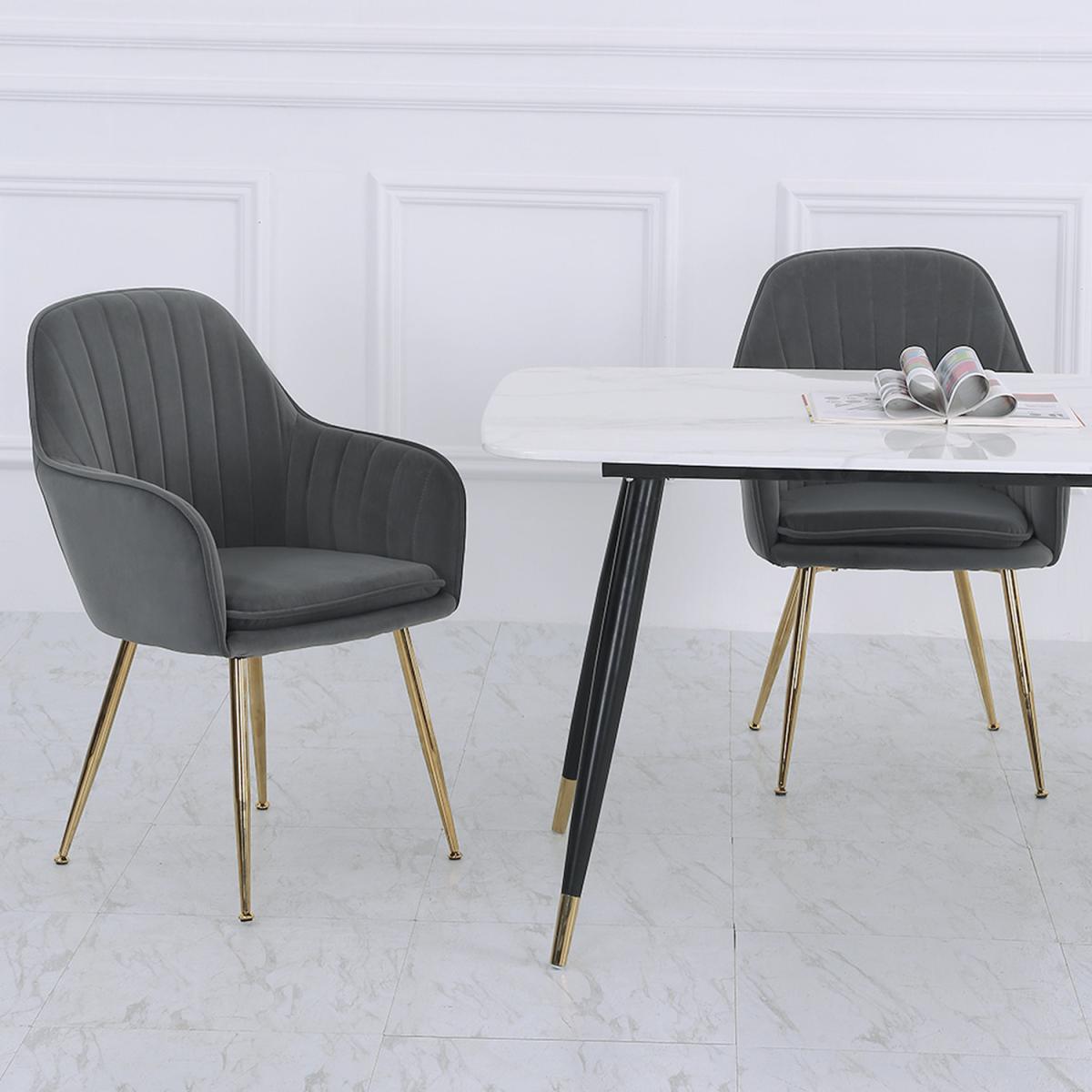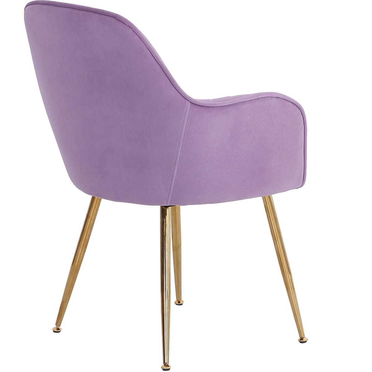 This set of dining Room Chairs features clean lines combined with a modern look. It's upholstered in light purple velvet fabric and filled with high density foam, which offers a comfortable seating experience. It is completed with metal legs equipped with plastic floor protectors to protect floors from damage, which is a real eye-catcher and enhances every room, whether dining room, living room or kitchen.