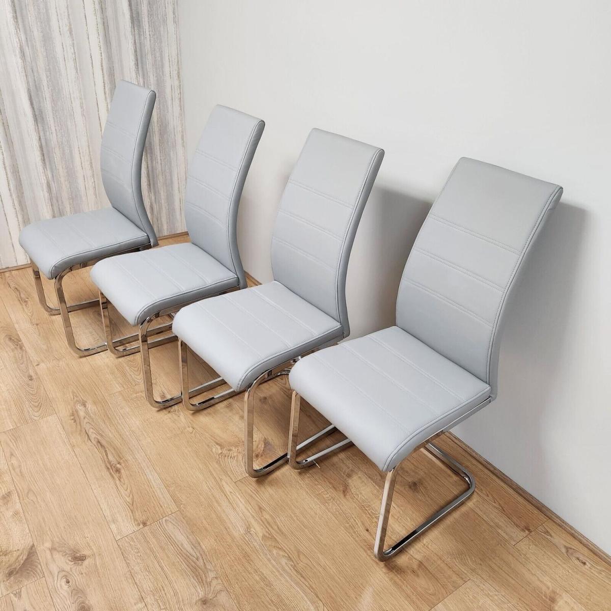 Dining Chairs High Back Set Of 4 Faux Leather Padded Grey Kitchen Dining Room - Grey