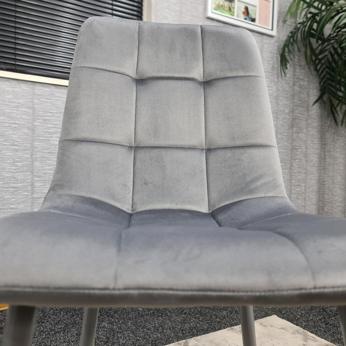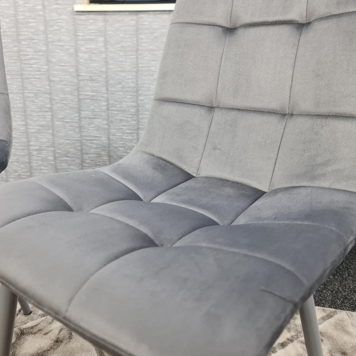 Great Value grey dining chairs! These are good quality chairs and very comfortable, Stylish with strong metal legs, Very stable and easy to assemble.. The high-quality velvet gives a premium look and ultra-smooth feel. A slightly curved shape is more comfortable to sit on, and with lots of padding. Armless design to give a chic look and bring modern elegance for your home dining room, Very quick and easy to assemble, No additional tool is required.