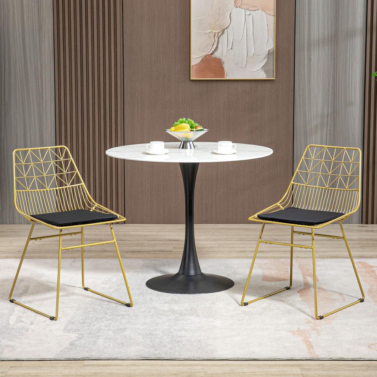 Dining Chairs Set of 2, Metal Wire Kitchen Chair with Velvet Cushion - Gold Tone