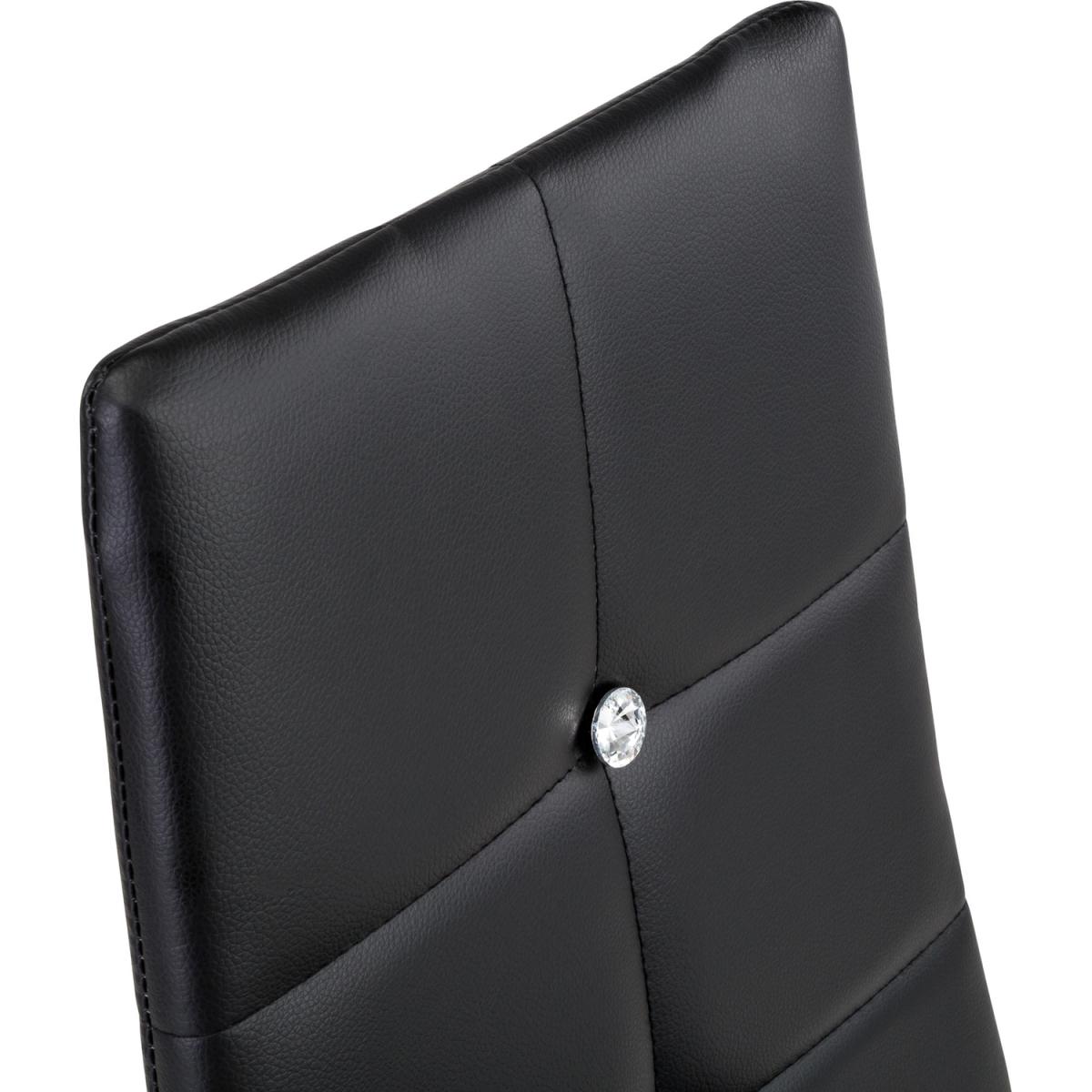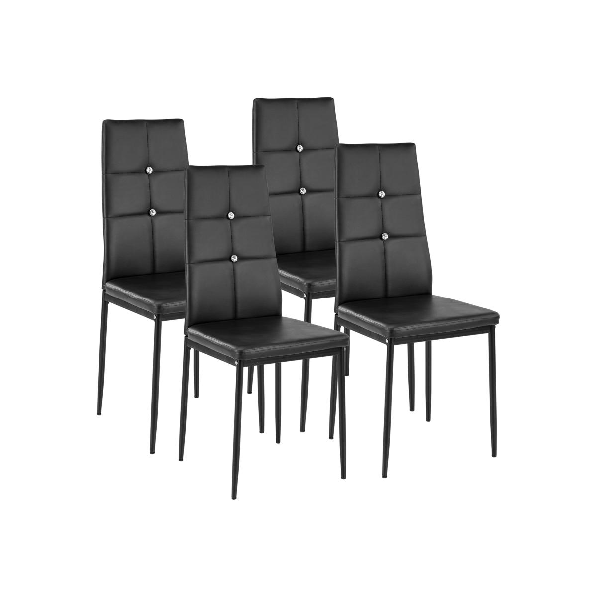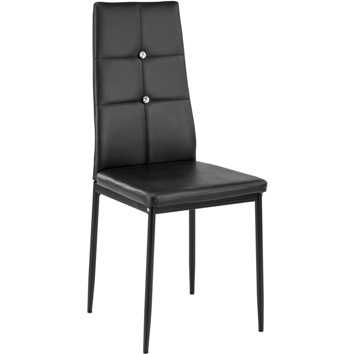 Make a stylish statement in your kitchen or living room with this set of 4 dining room chairs from tectake. This chair set combines a chic design with practicality which will complement your other furniture perfectly. Exceptional comfort and durable imitation leather make these easy-to-clean, high-backed chairs stand out. Despite the dining room chairs svelte and light weight form, these padded chairs are very stable and durable. The real eye-catcher here is the diamond-effect stones added to both sides of each chair, giving these designer chairs a special touch. These chairs are also a great statement outside the dining room, be it around a kitchen table, in a waiting room or around tables in a restaurant. Bring on-trend design into your home with this set of 4 dining room chairs from tectake.