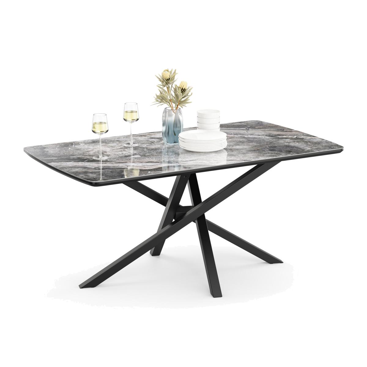 Stunning in its simplicity, the Spinningfield dining table creates a chic centrepiece in any kitchen or dining room. Featuring an opulent marble effect top set on an eye-catching cross leg base, add a high-end industrial feel to your dining space: the perfect finishing touch to the modern home. Bringing form and function, the spacious tabletop is set on powder coated adjustable legs, ensuring sturdy dinner party use in any home. As well as creating a contemporary style statement, the black spider-style design maximises stability and leg room. The 50kg capacity makes it the perfect table for dining and entertaining, boasting savvy style. Add a touch of luxe to mundane weeknight meals, large family gatherings, and lavish dinner parties. Please note: the marble effect may differ slightly. This large item is in multiple packages which may arrive separately. Check courier tracking for full details.
