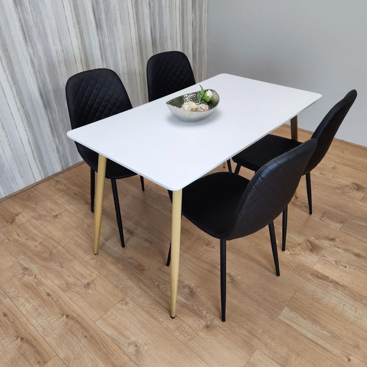 Dining Table And 4 Black Chairs White Bella Wood Table Kitchen Dining Set - White Black