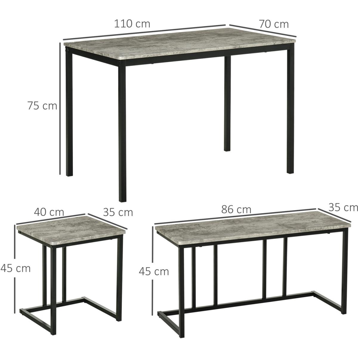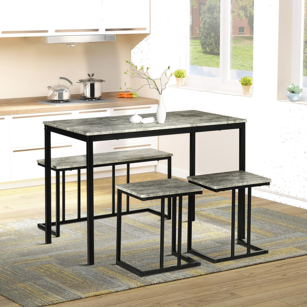 Dining Table and Chairs Set for 4 People,Kitchen Table with Steel Frame - Grey