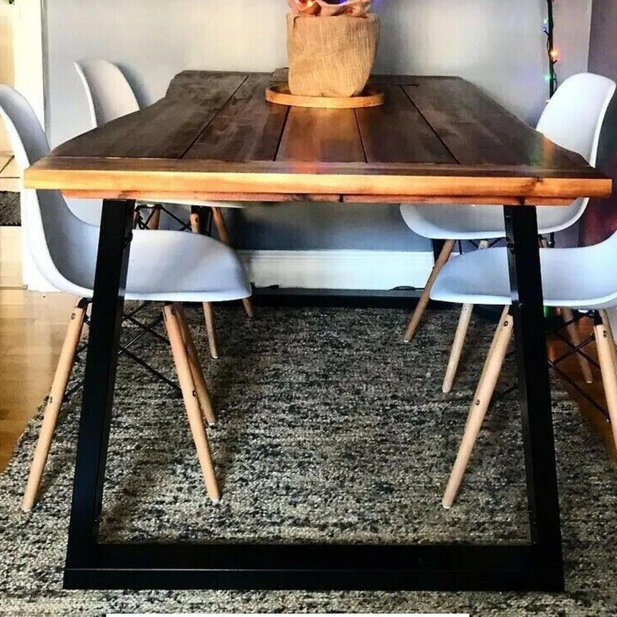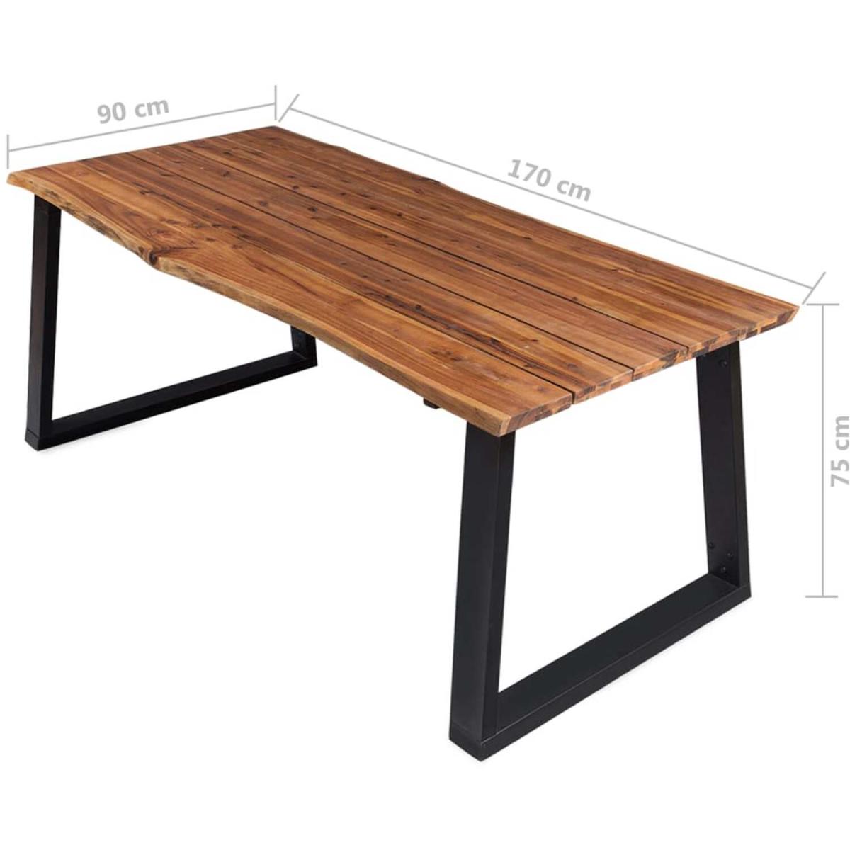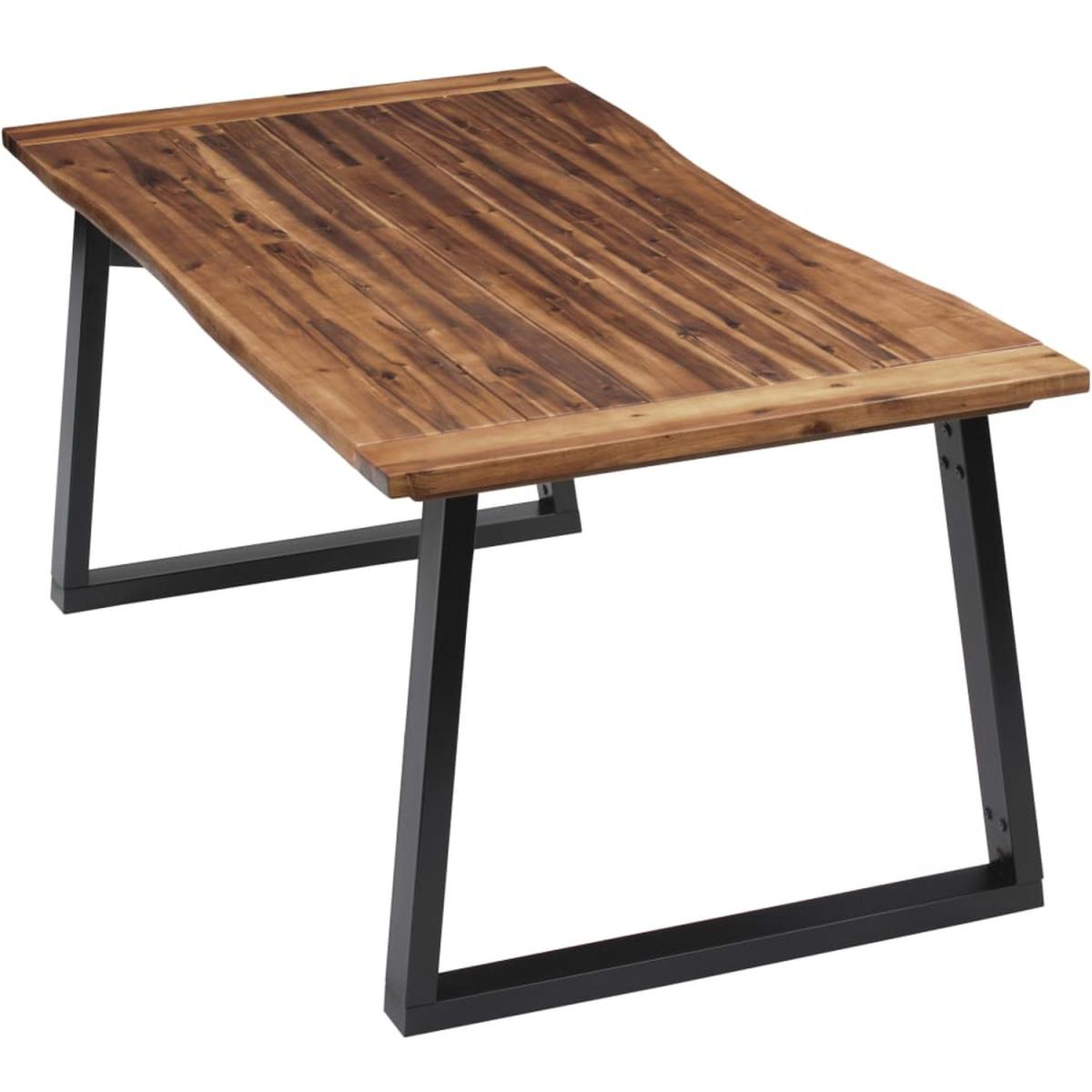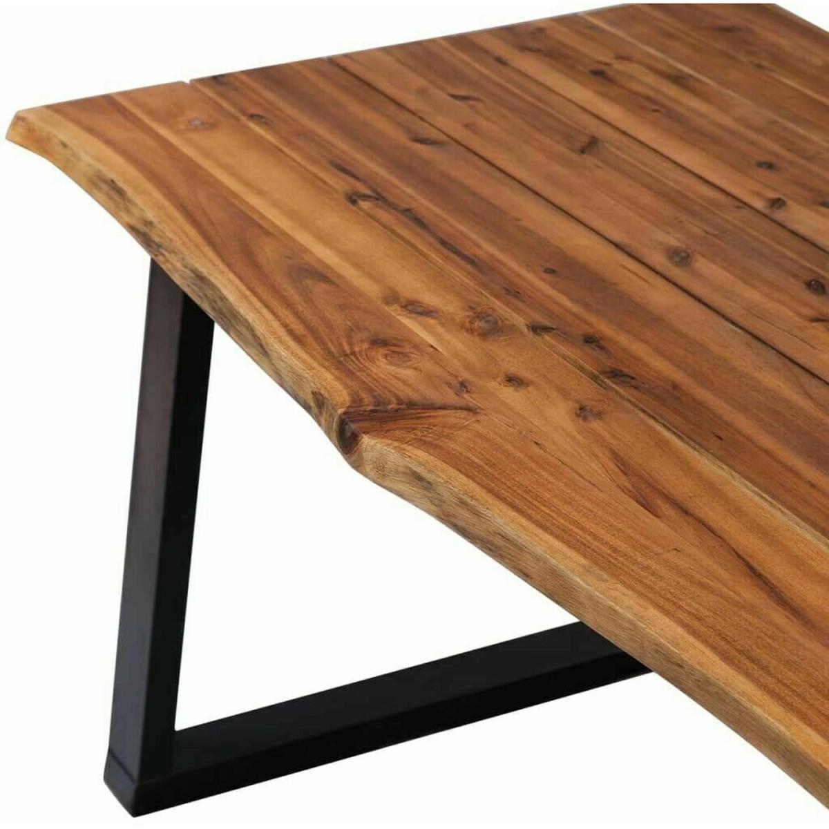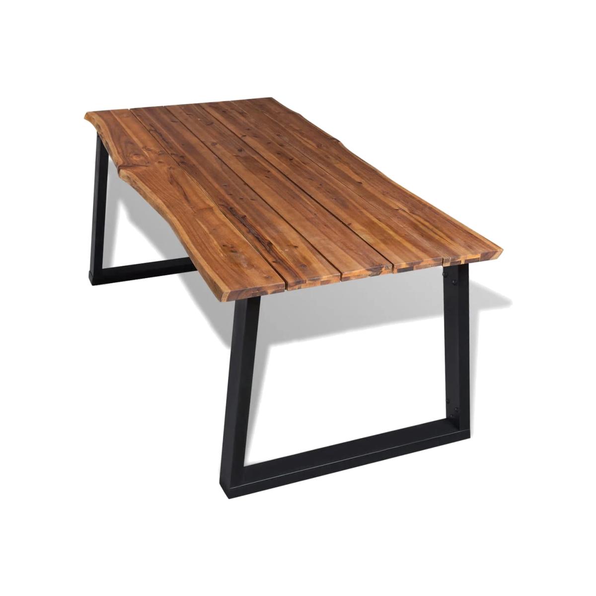 This high-quality wooden dining table has a cool, industrial style and will make a great addition to your dining room or kitchen. The dining table is very sturdy and durable. The tabletop is made of solid acacia wood, which is very durable. The wood's live edge that follows the natural shape of the tree increases the beauty of the table. The unique, U-shaped, powder-coated metal legs add to the industrial style and make the table very stable. Assembly is easy. Please note that wood is a natural product and can show imperfections.