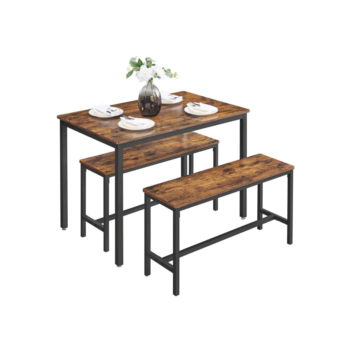 Dining Table with 2 Benches Set for 4, Space-Saving - Bronze