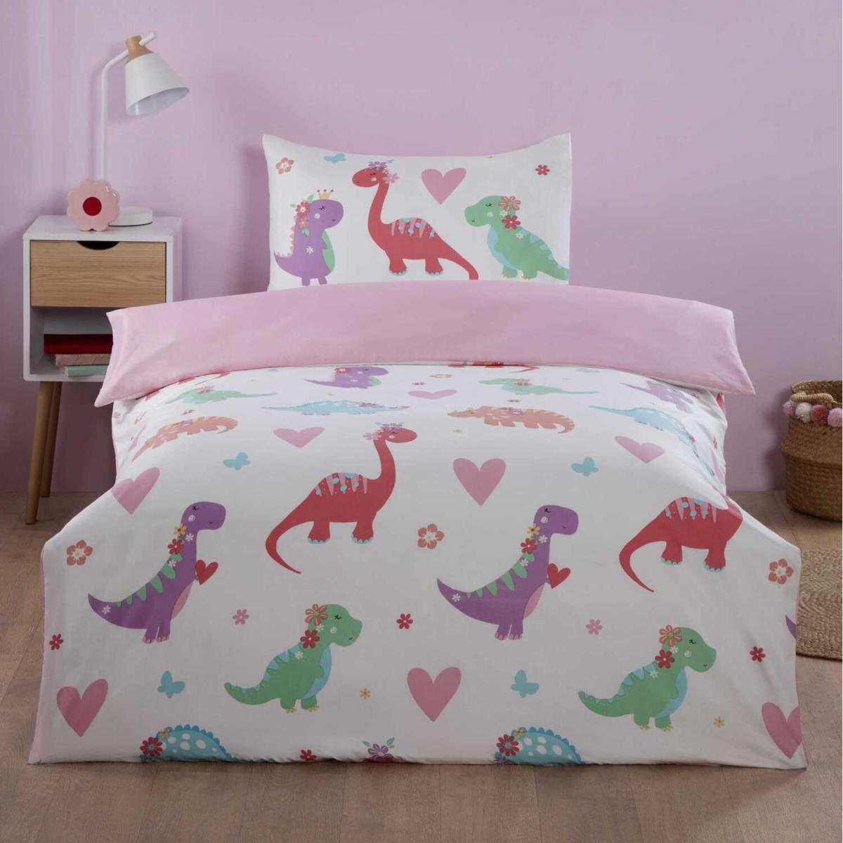 Dino Daisy Microfibre Polyester Duvet Set With Pillowcase - Multi / Single