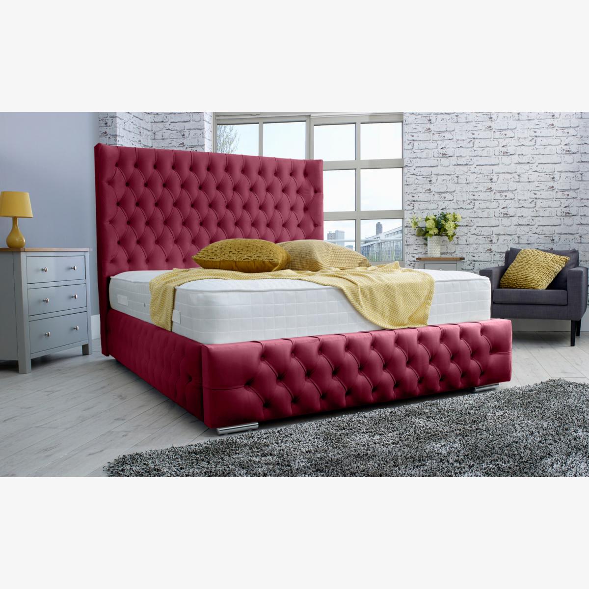 Wake up to the bright sunshine on this stylishly upholstered Dino bed frame and start your day in the best frame of mind. Our Dino bed offers elegance and plush comfort, all wrapped up in an exquisite piece of furniture. It features all-sides diamante crystal buttons that have been hand-sewn to give a perfect finishing. The headboard, footboard, and both sides of the frame are highly padded to give a sense of luxury and full comfort when you sleep on it. The Dino bed is every inch sophisticated with attractive elements that are well complemented by the chrome feet and fully-padded base. Irrespective of the size of your bedroom, you are sure to find the perfect piece that will fit into your space. You can also choose your preferred color of plush fabric. The mattress is not included in the package.