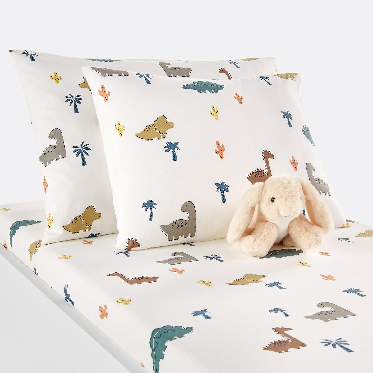 Our designers at La Redoute Interiors have taken a long journey through time to create Dino Pop, a very soft cotton set in pretty pastel shades, where cute little prehistoric creatures watch over your little ones while they sleep. Cotton is part of our daily lives. We love it for its suppleness and softness. Easy Care, it is ideal for the beds of young and old alike!Product Details • 100% cotton • 144 thread count • Patterned with little dinosaurs. Change up your bedding look for each season by mixing and matching this range with plain items from our Scenario bedding collection. Care Advice • Machine washable at 60°C • By washing your laundry at 40°C instead of 60°C, you limit energy consumption. Dimensions • 35 x 45cm • 40 x 60cm • OEKO-TEX® Standard 100. Standard 100 certification by OEKO-TEX® tests textile products for harmful substances via an independent, international label.