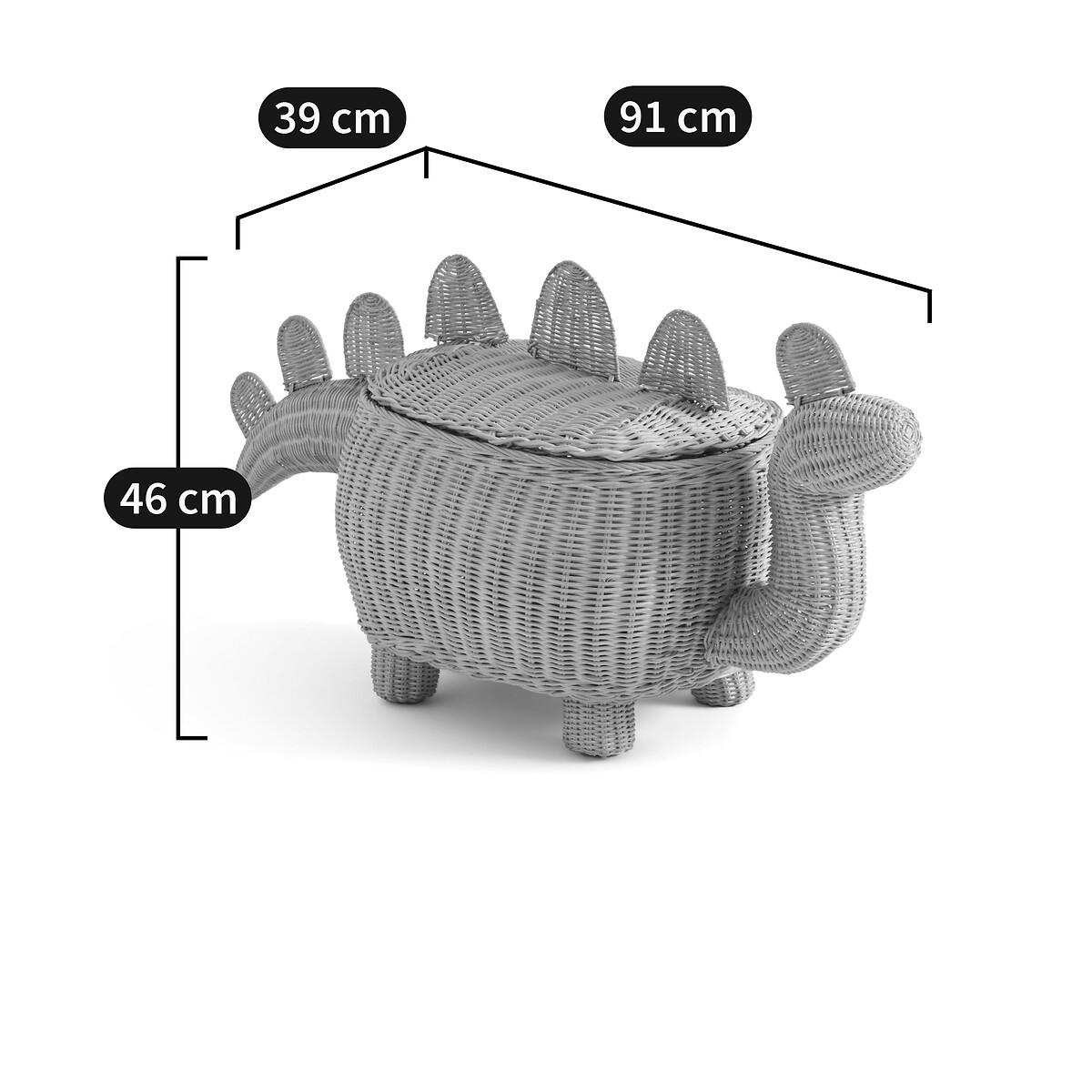 To tidy up while having fun, here is Dinos, the dinosaur basket! Practical, original and only a little bit fierce, it will quickly become the ideal playmate for children to help them bring some order to their room. Product Details • In natural painted rattan • Removable lid Quality Info • Hand made, each basket is unique: colours and dimensions may vary from product to product. Dimensions • Length: 91cm • Height: 46cm • Depth: 39cm Parcel dimensions and weight1 parcel • L93 x H48 x D39cm. 2.8kg.