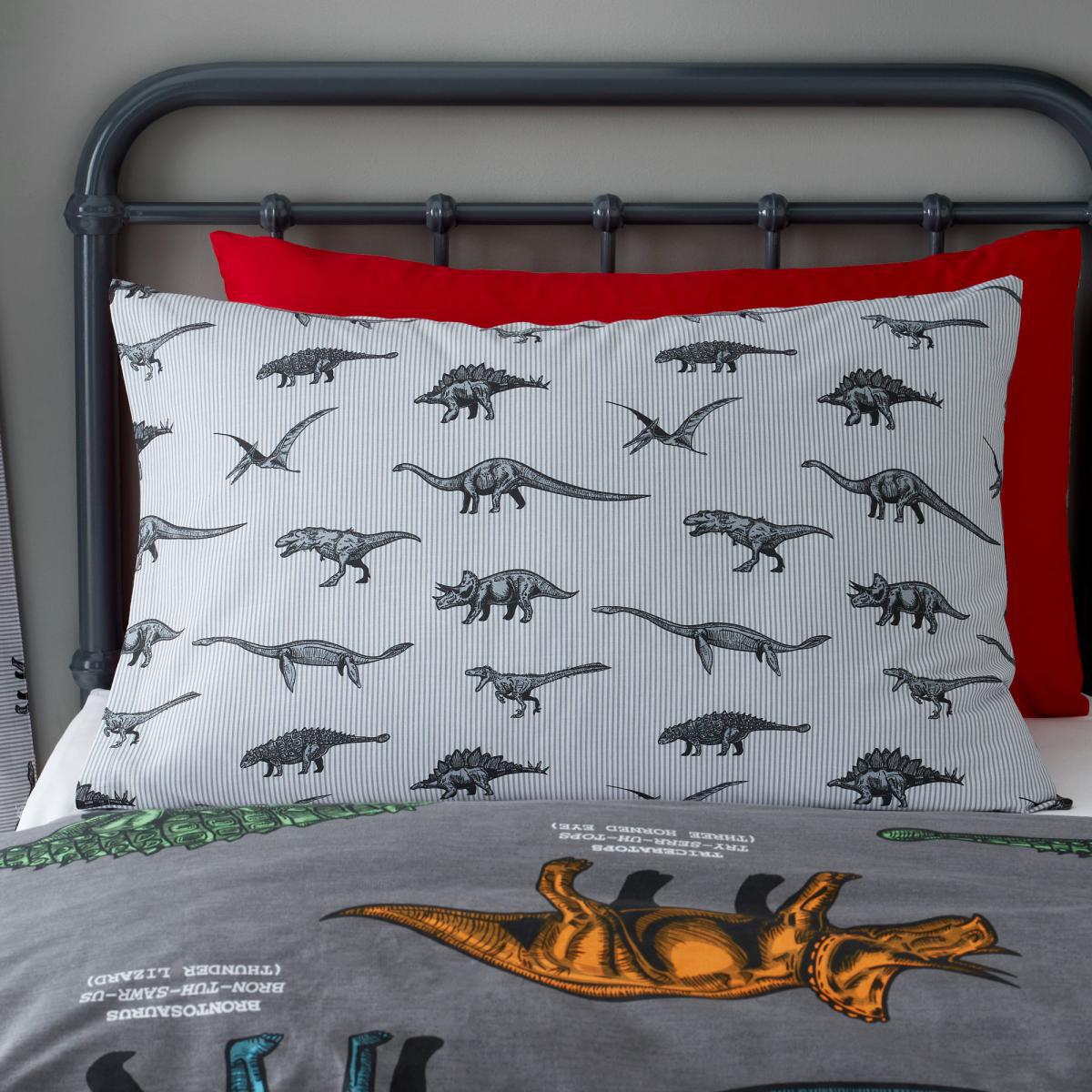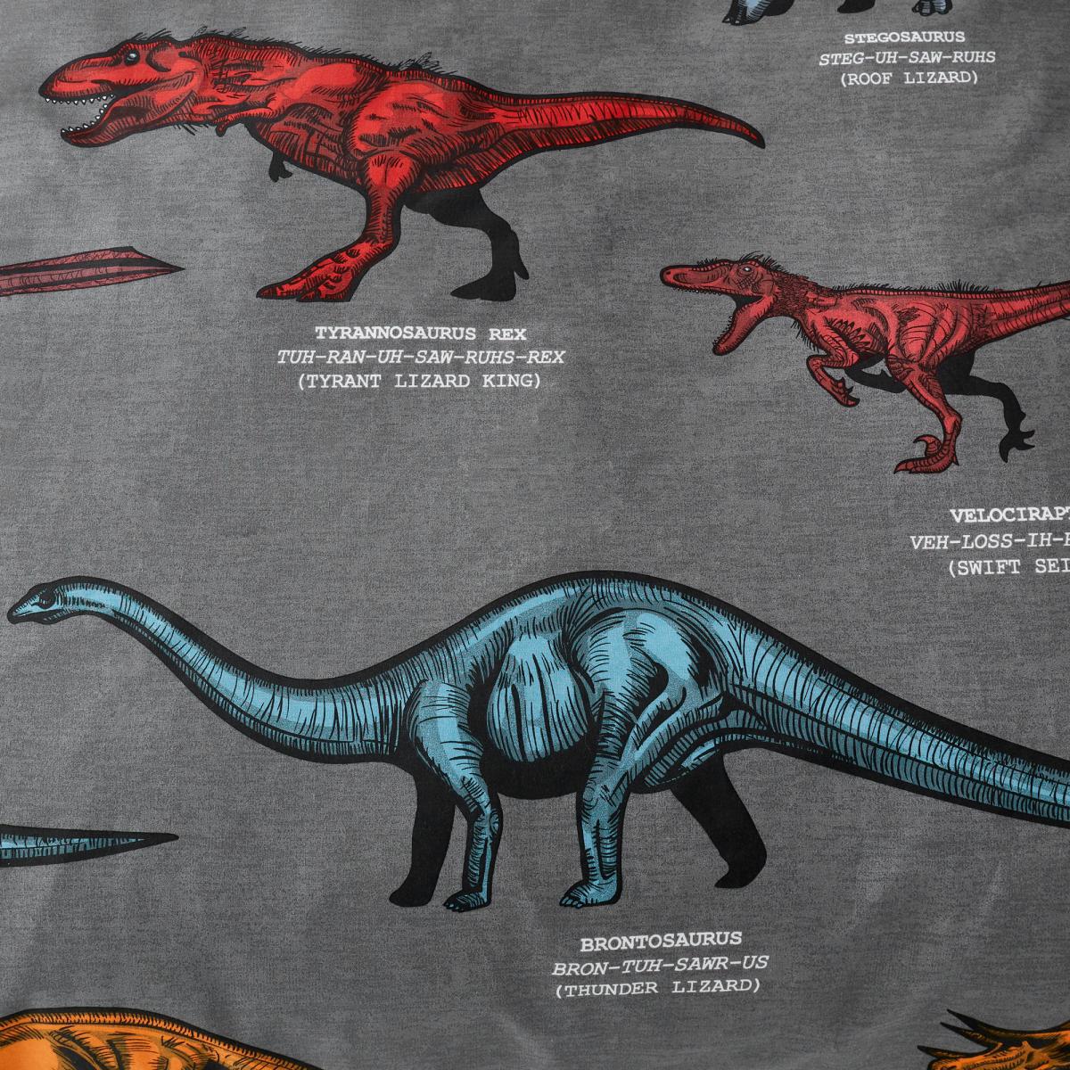 Dinosaur Friends Grey 100% Cotton Duvet Cover and Pillowcase Set Grey, Red and Blue