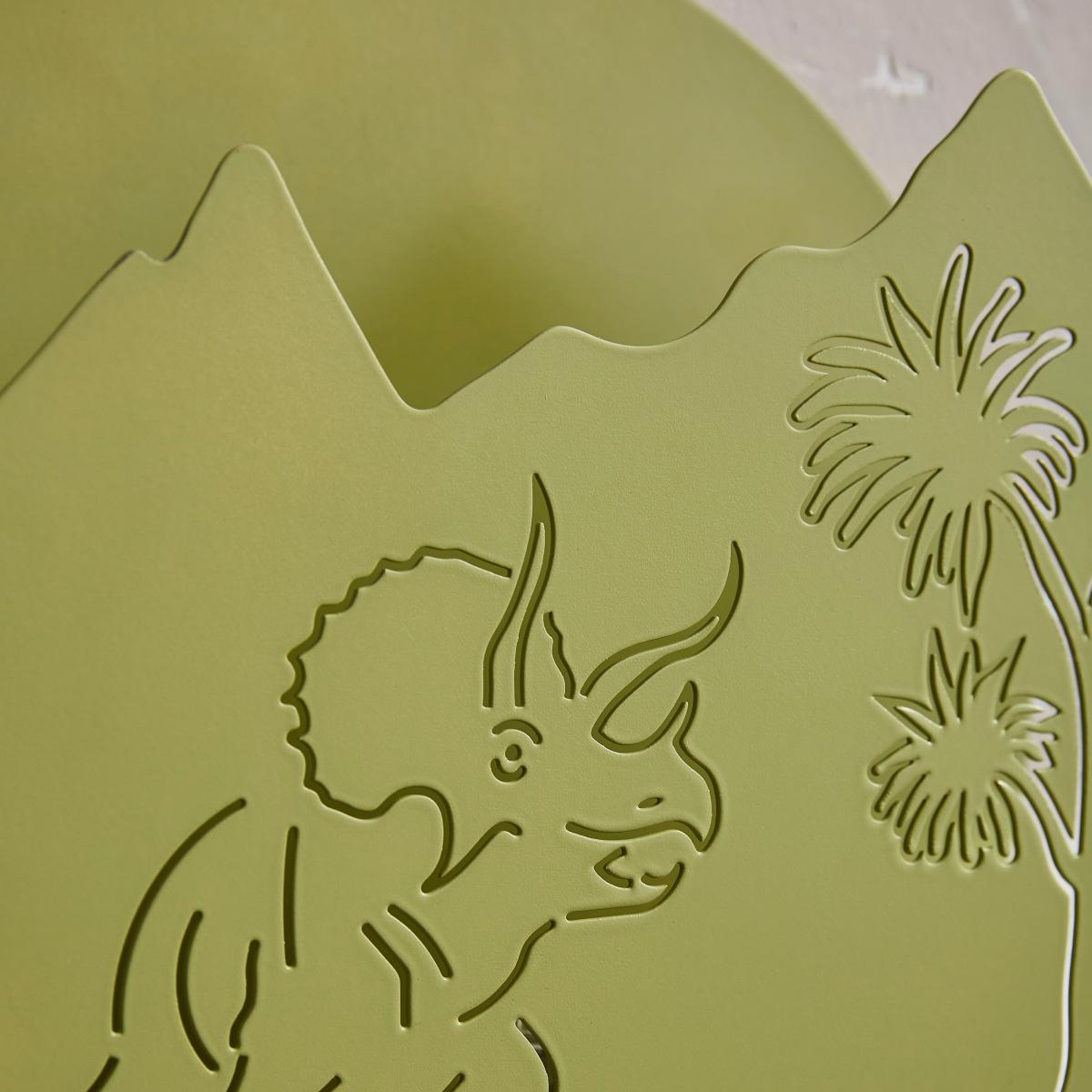 **In collaboration with the Natural History Museum*** Dinosaur-Inspired* Playful Cut-Out Design* Stylish Matt Green Finish* Stunning Back Glow This gorgeous dinosaur-inspired wall light features a playful cut-out of a dinosaur roaming, perfect for adding some pre-historic charm to your little one’s room. The matt green finish gives it a stylish, modern touch that complements any decor. With a stunning back glow, it creates a warm and inviting atmosphere, making it a delightful addition to bedtime routines.**Natural History Museum x Dunelm**Since the name ‘Dinosauria’ was first coined back in 1842 by the founder of the Natural History Museum, Sir Richard Owen, there has been a public fascination with these awe-inspiring creatures. And where better to learn more about these prehistoric beasts than at the Museum’s Dinosaur Gallery that houses the world’s most diverse collection of dinosaur fossils including the most complete Stegosaurus in the world and the jawbone of the first T. rex ever found. This collection celebrates dinosaurs from the different time periods spanning the Mesozoic Era, celebrating their enduring appeal to kids and adults alike. © The Trustees of the Natural History Museum, London 2024. All Rights Reserved.
