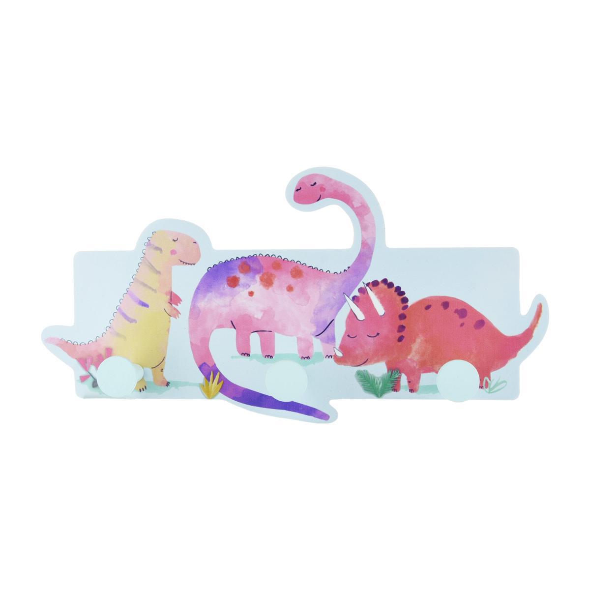 Dinosaur Three Pack Wall Hooks Pink, Purple and Yellow