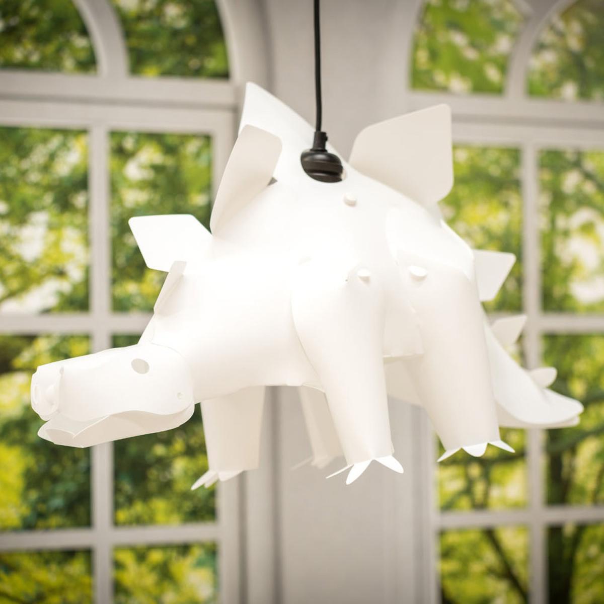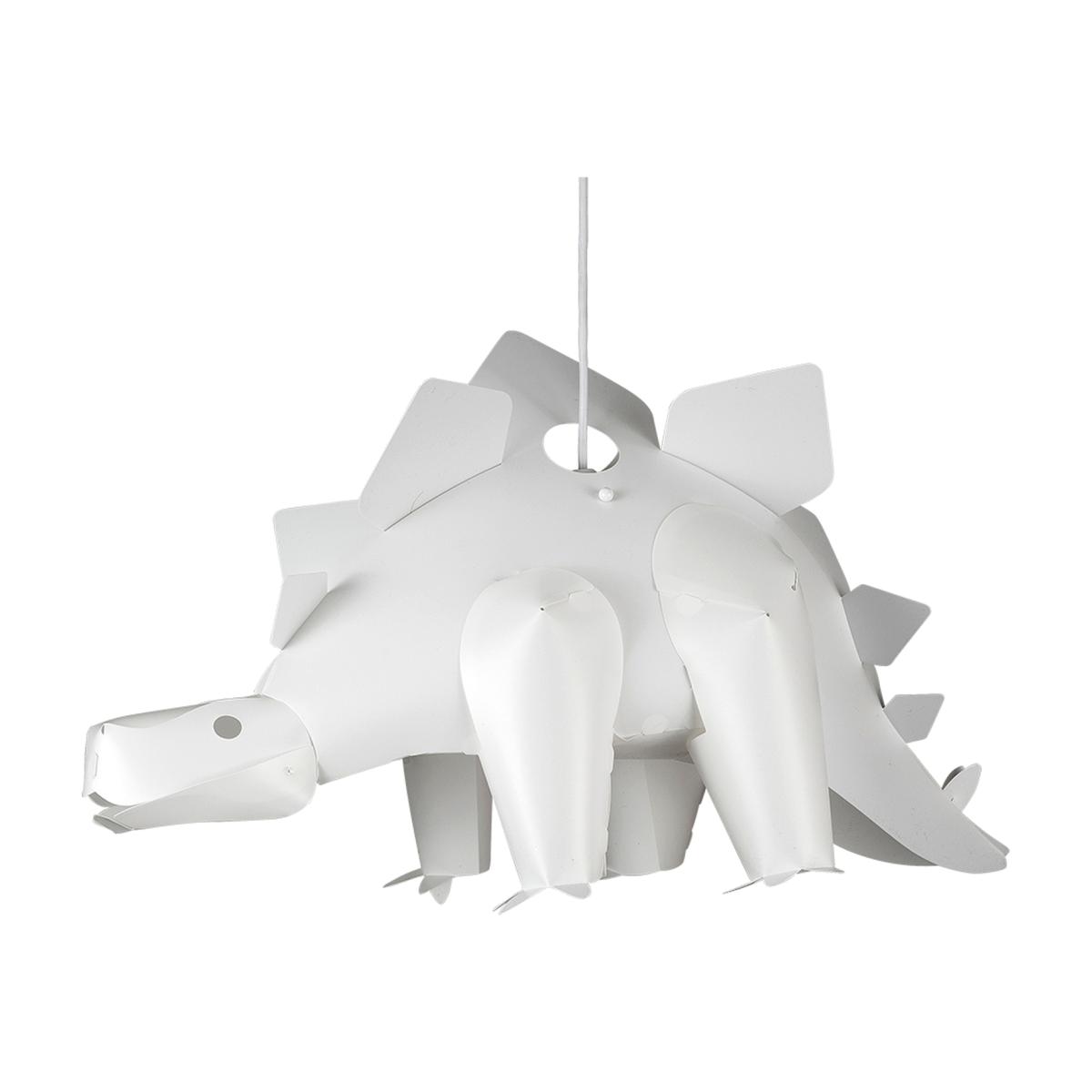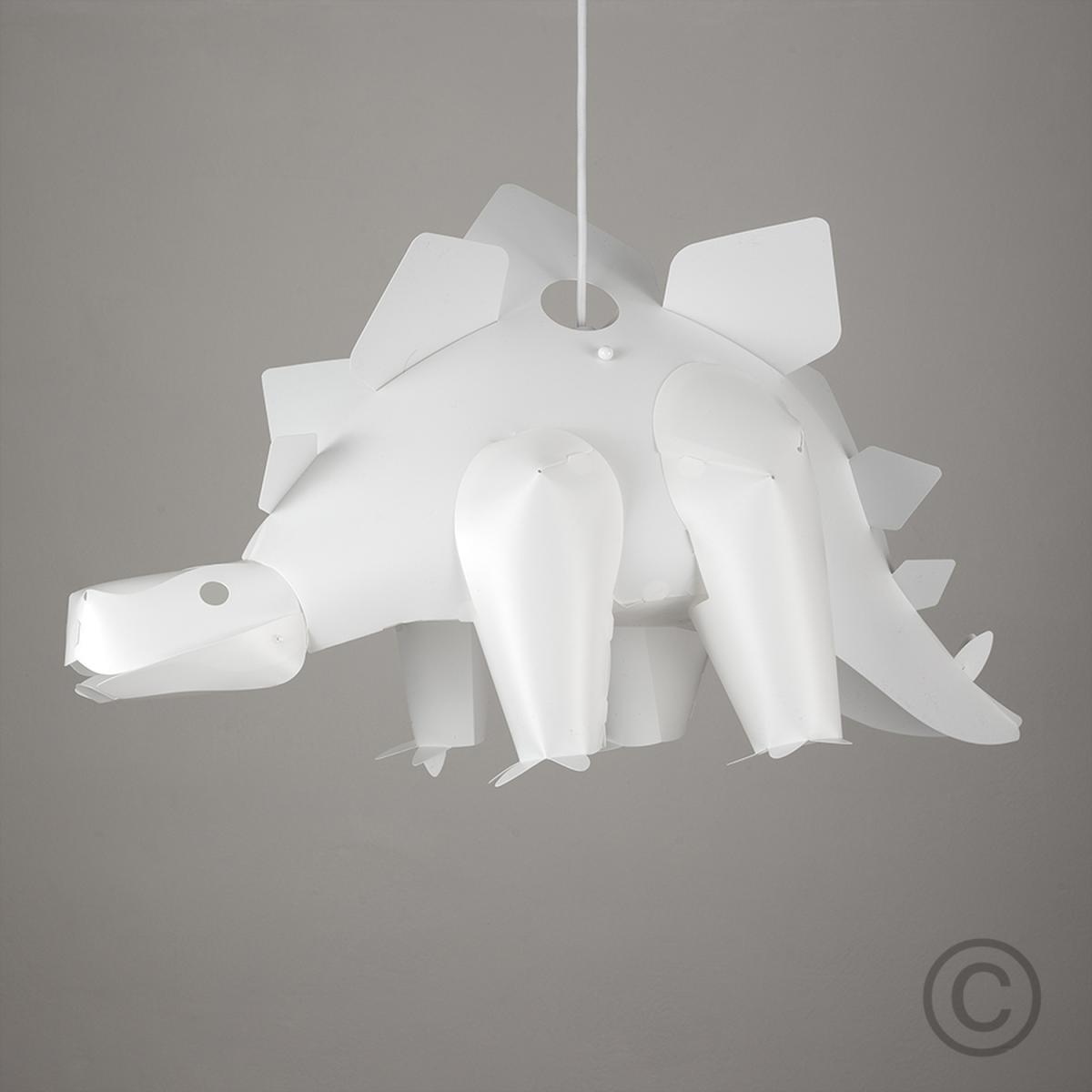 A fantastic addition to a young child's bedroom, this cool fun ceiling pendant light shade comes in a brilliant white Jurassic dinosaur, stegosaurus design. Ideal as a kids gift or for simply updating a young boy's bedroom with a bit of fun. The bulb is positioned inside the animal so the whole dinosaur is illuminated when the light is switched on. Once assembled, the durable hanging stegosaurus light shade is easy to fit - simply attaching to a standard ceiling light socket - no electrical installation required. Please Note This item comes flat packed and self assembly is required. 1 x 40w BC B22 GLS bulb is required - not supplied.