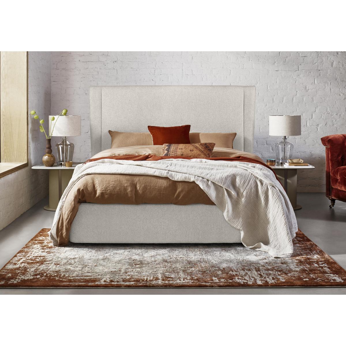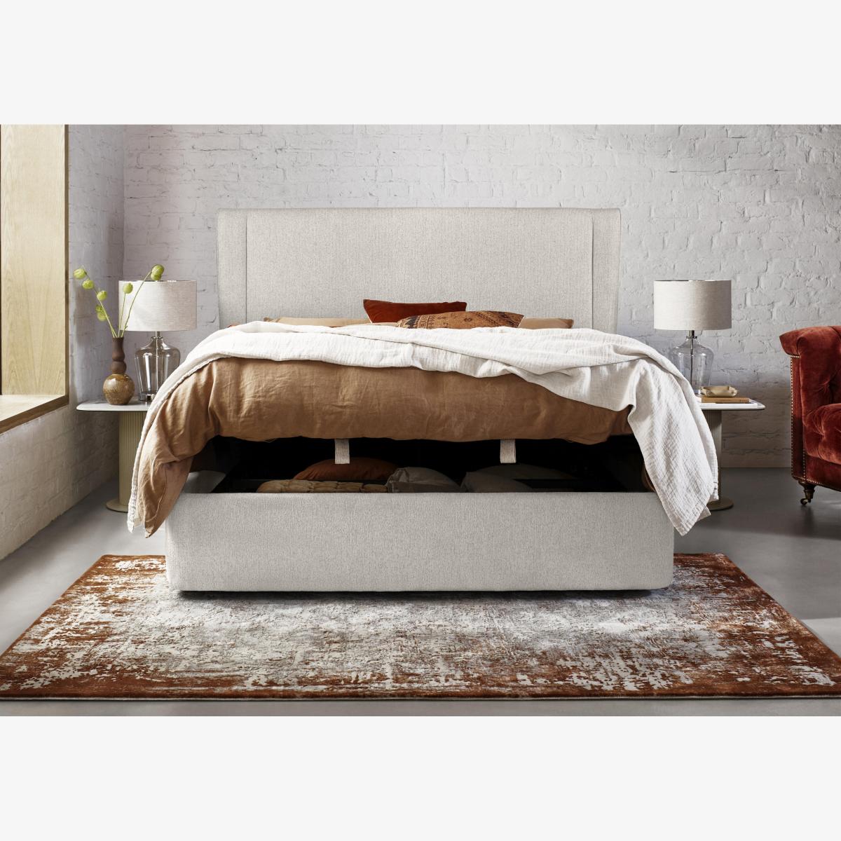 For bedroom style and bedroom storage, you can’t beat our exclusive Dior end-opening ottoman bed frame. And you’ll love the price tag too. Only at Furniture Village. Why you'll love it This ottoman bed frame brings the wow factor – and at an incredible price. Its stylish curves hide a large storage compartment. The gorgeous winged headboard is sumptuously cushioned. Integrated safety system. Spacious and practical storage for pillows, duvets, clothing and more. Slatted wood base encourages ventilation. Moving house? It’s quick and easy to disassemble tool-free. Choice of upholstery colours. In double, king and super king bed sizes. The Dior ottoman bed frame is a Furniture Village exclusive. What you need to know Mattress sold separately. Slatted wooden mattress base. 30 slats in king size. This ottoman bed frame opens at the end. Maximum mattress weight by bed frame size: 56 kg for double, and 65 kg for king and super king. Please keep hands clear of the mechanism when opening and closing the ottoman. Do not sit on the foot end of this ottoman bed frame when opening. Clean regularly using a soft brush or vacuum with the curtain attachment. Deal with any spills promptly. Professional cleaning advised for oil- and grease-based stains. Some fabrics can show wear on areas of more use or in direct sunlight. Flattening and shading of heavy wear areas on pile fabrics like velvet is unavoidable. Be sure to brush pile fabrics only in the direction of the pile. Please read our upholstery care guide for more advice. Item code: DIOR46OTASTN-001