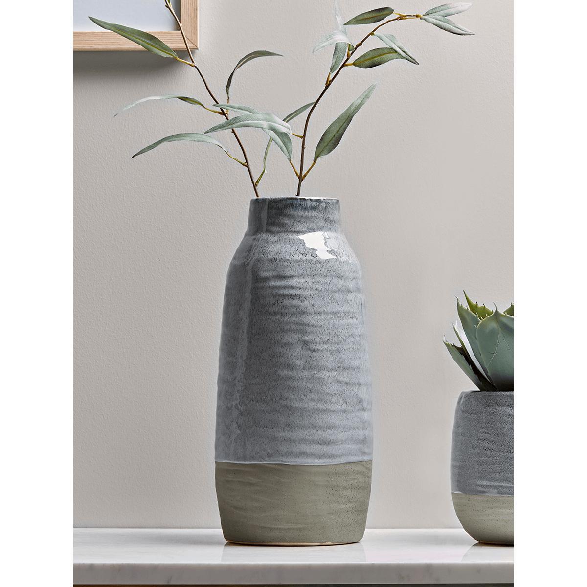Handmade from porcelain with an artisanal waved finish and grey-blue dipped effect glaze, our fabulous vase is perfect for real and faux flowers alike. Each piece features unique pitting and speckling thanks to the reactive glaze and handmade design.