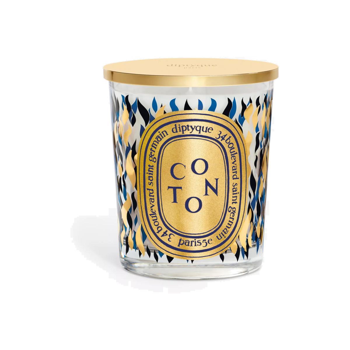 Diptyque's dancing flames come to life on three limited edition candles, created specially for the festive season. Black, colourful, and gold flames dance joyfully on the candle glasses. Each of the three classic candles is adorned with a golden metal lid. Three surprising and addictive olfactory experiences. Each is a reinterpretation by Diptyque of a winter scent, made luminous by the Maison. A silky and powdery harmony in the whiteness of tonka bean. Bergamot, violet leaf and ylang-ylang mingle with iris and musk for a soft and cosy sensation. Leave the candle to burn until the surface is completely liquid then reposition the wick in the centre and trim it regularly.