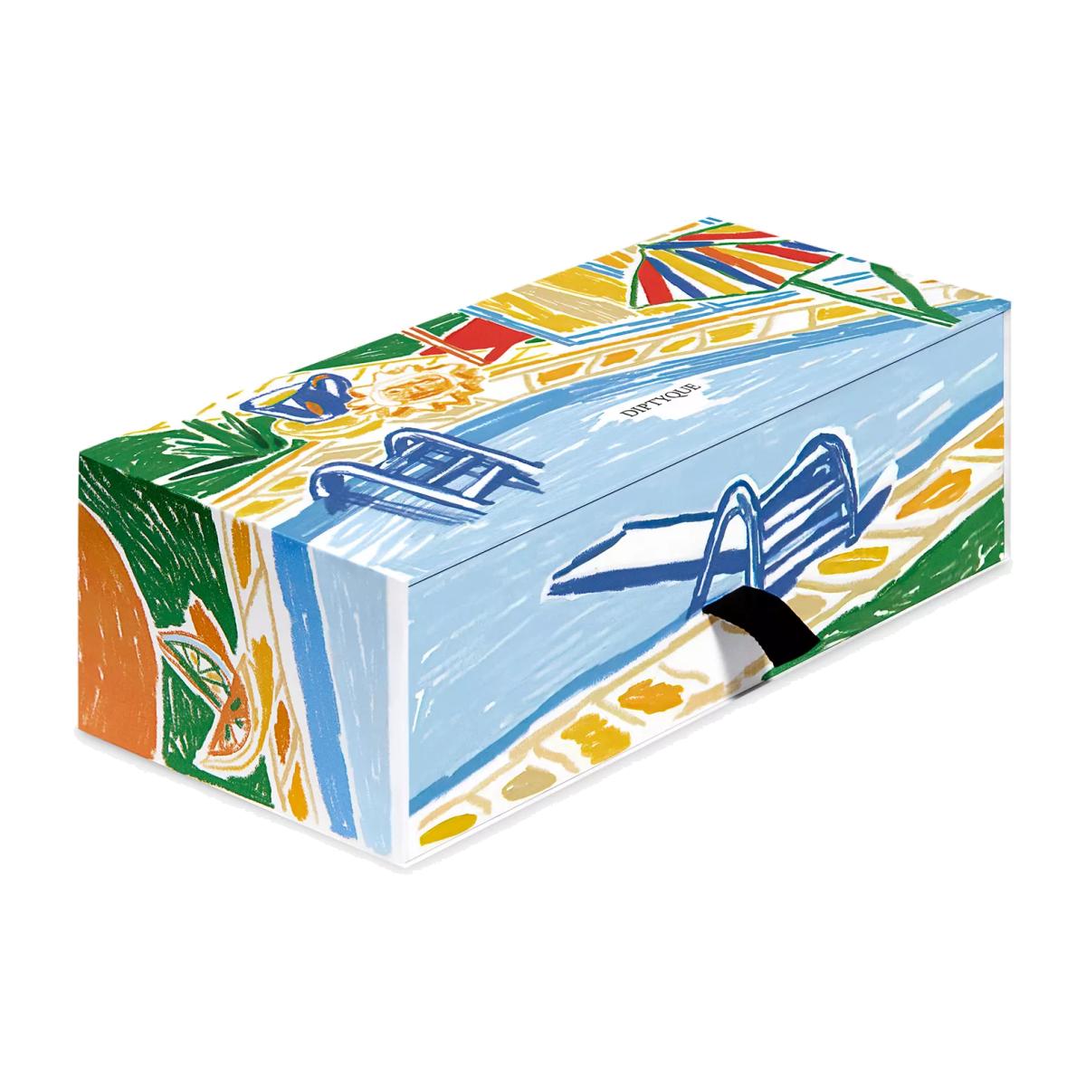 To celebrate summer, Diptyque beckons you in for a relaxing, sunny stay on the Mediterranean coast. Turquoise waves ripple on the horizon, colourful parasols stud the beach, and the evenings stretch late into the night This set of three candles is illustrated by artist Alexandre Benjamin Navet, and paints a portrait of a familiar world. The sun beats down, the wind whispers in the leaves. Summer has landed.