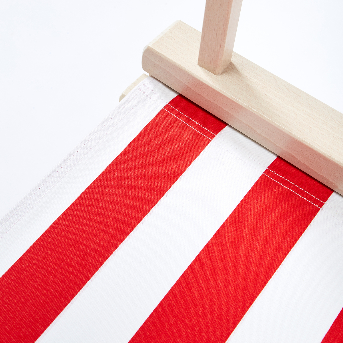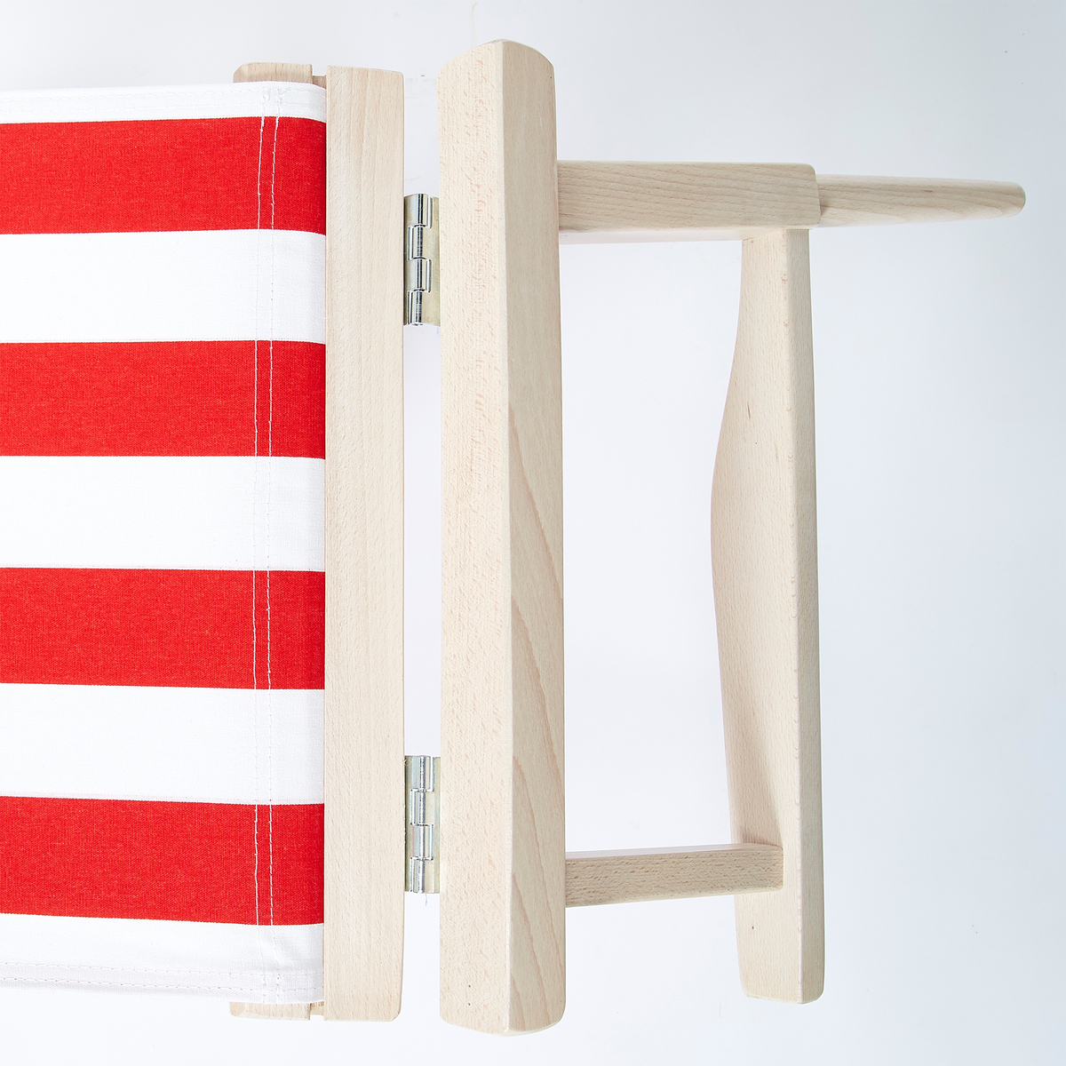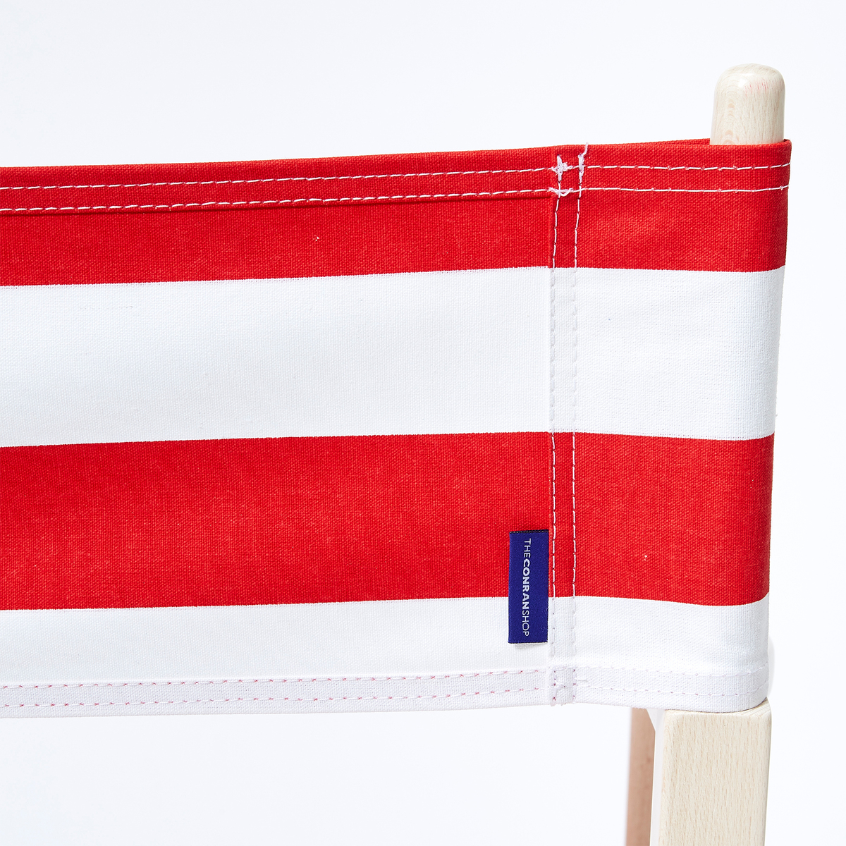 Exclusive to The Conran Shop, the Director's Chair offers a compact wooden body and hardy striped upholstery, adding a unique contrast to living areas. Crafted in Italy from white-stained beech, the chair features rust-proof hinges and a specially engineered layer of paint to prevent sun damage. Boasting a foldable frame with removable fabric, it pairs perfectly with our range of deck chairs and is easily self-assembled without any tools. The beech used in the production of the chair is not only elegant but practical too. It boasts a rigid structure which makes it shock-resistant and requires minimal upkeep. Care instructions: Clean with a soft, damp cloth. Do not use any abrasive or corrosive cleaning products. Whilst suited for outdoor use, we recommend storing this chair inside to increase longevity. Fabric Information Cotton: Printed cotton