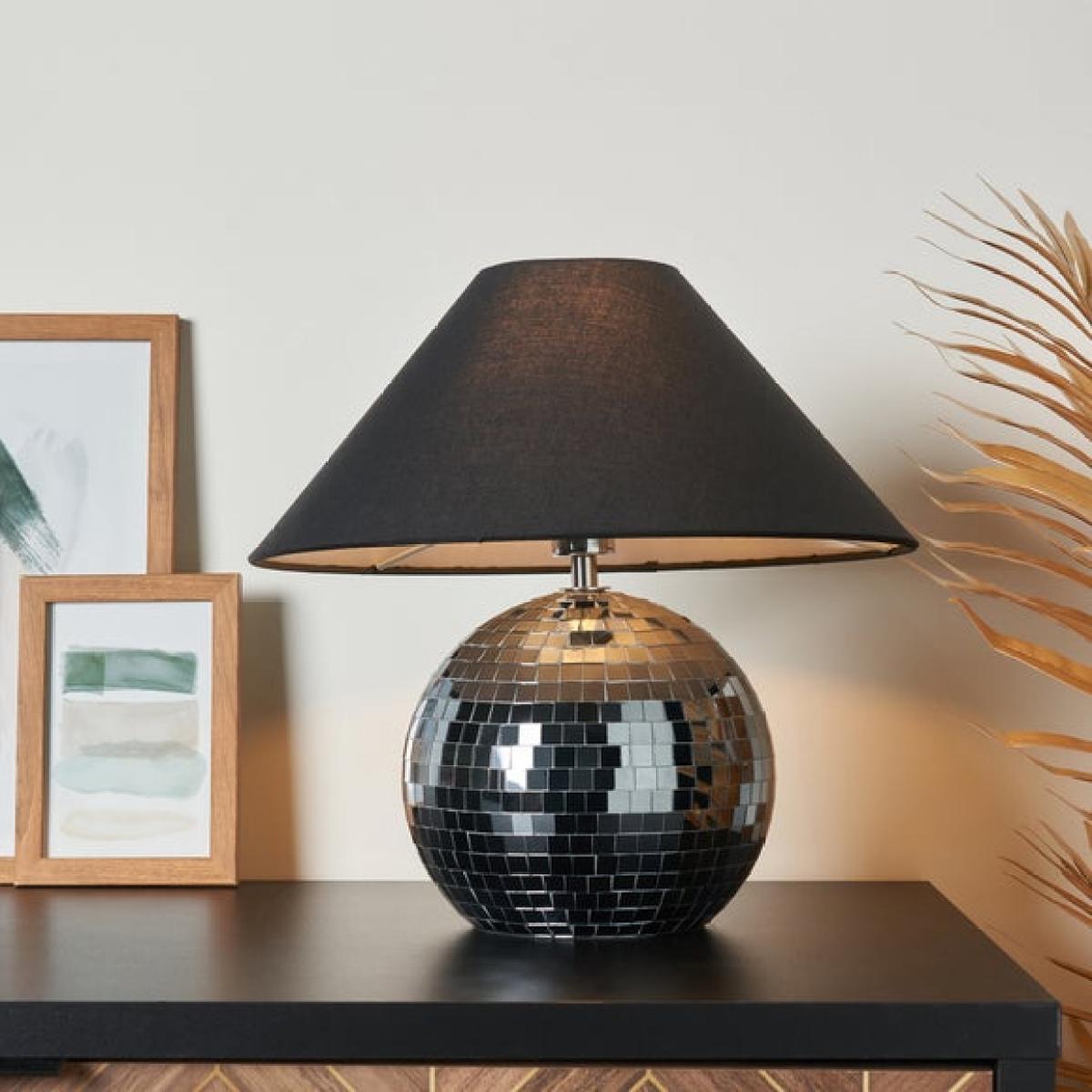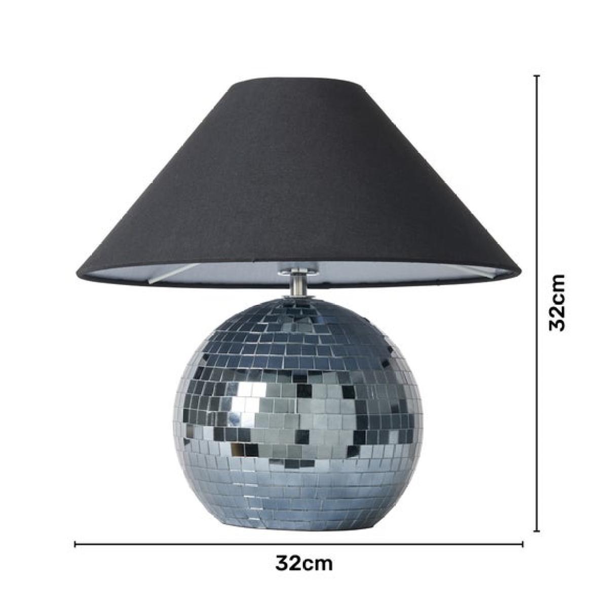 * Fun, Eye-Catching Design * Mirrored Tile Finish - Reflects Light * Available in Multiple Colourways Add fun, party-inspired vibes to your home with the Disco Ball Table Lamp. Effortlessly stylish, it features a mirrored tile finish that reflects light beautifully. Made from durable materials, it's available in multiple colourways.