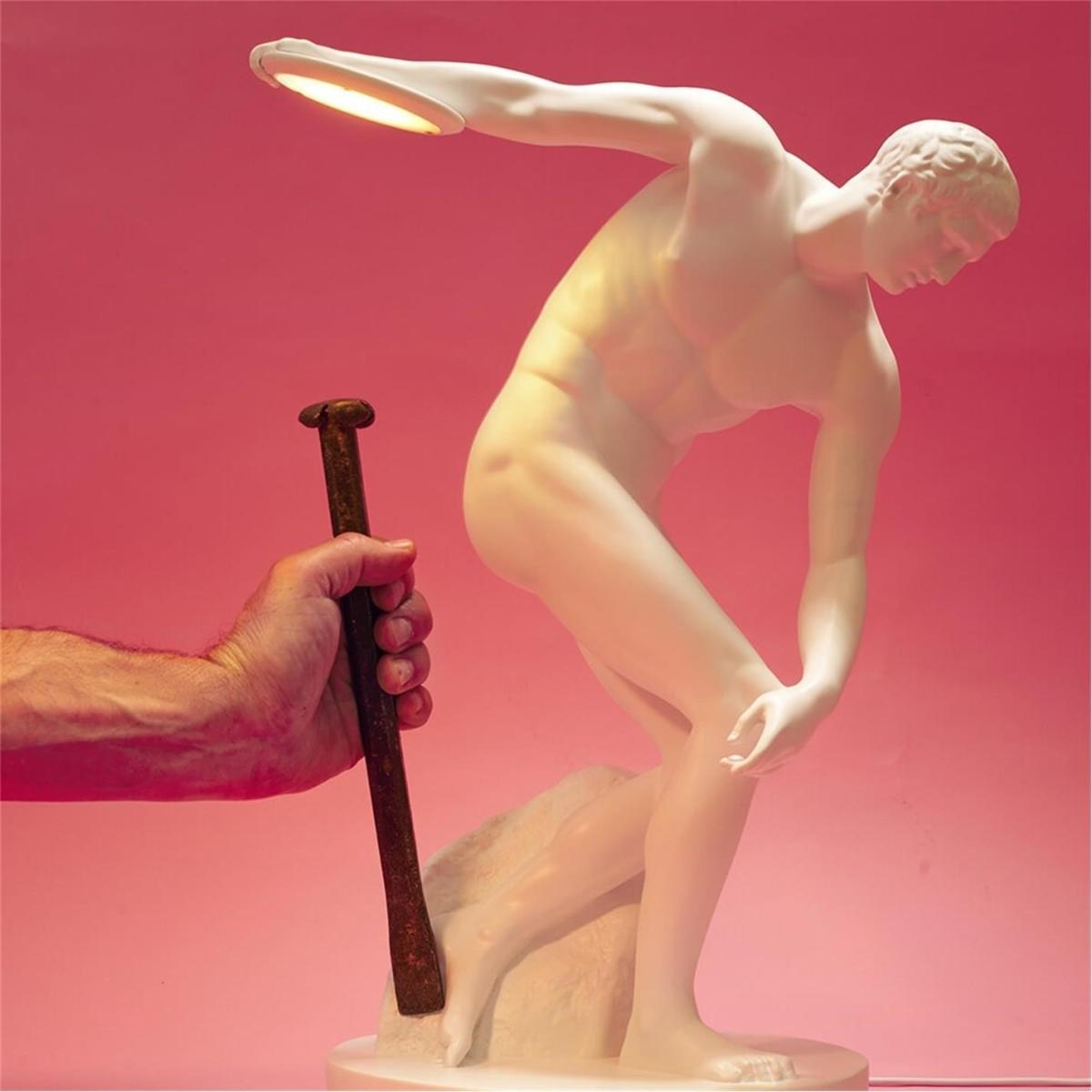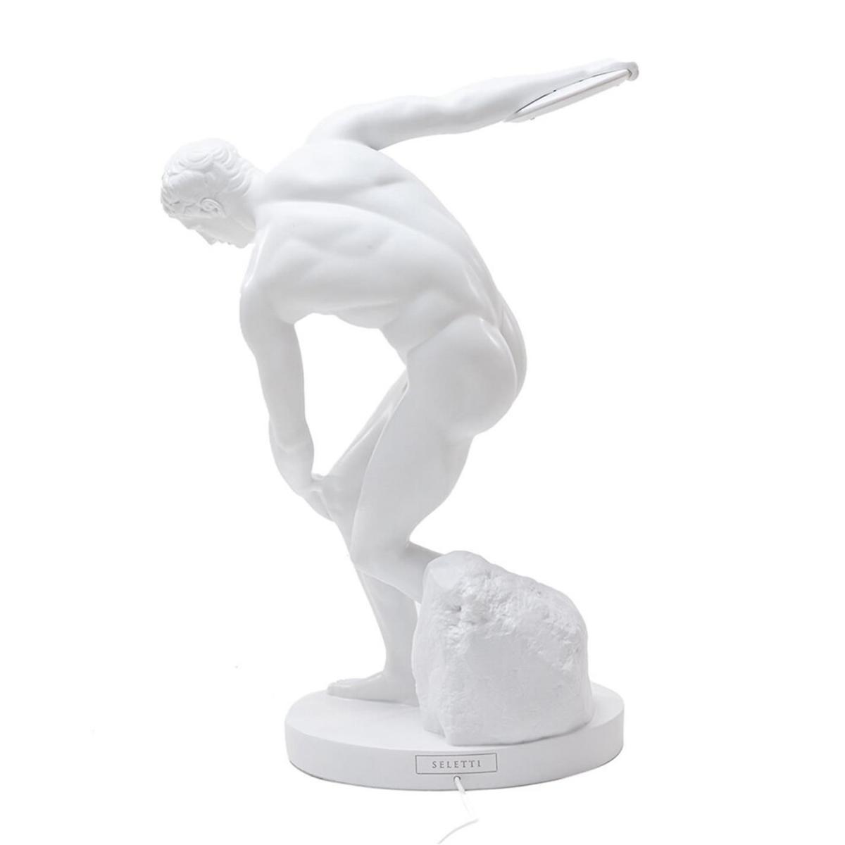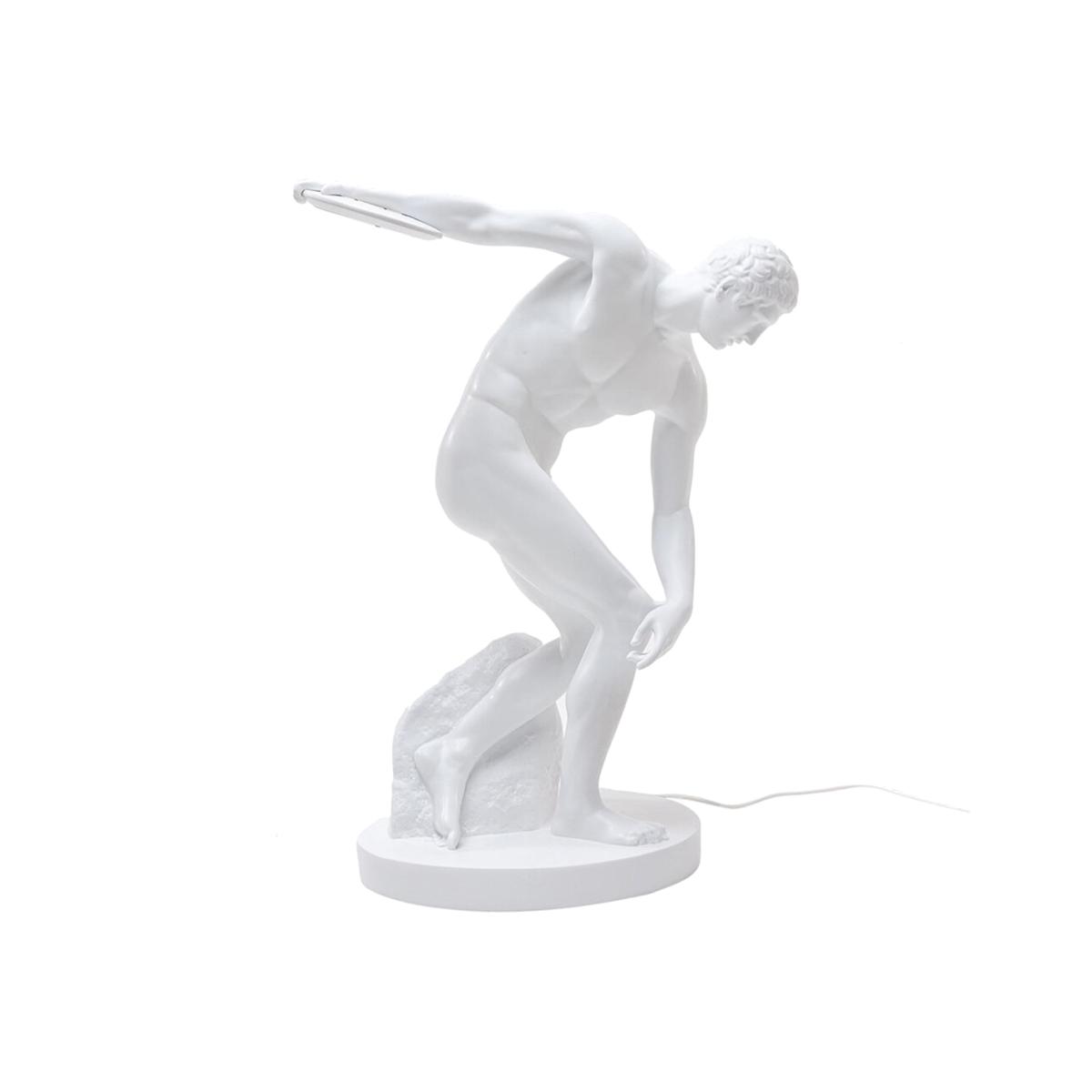 Introducing the Discobolux Lamp, a masterpiece in the world of lighting created by Uto Balmoral. This lamp is a true work of art that combines classical sculptures with modern technology. Witness a classic figure throwing a discus with an integrated light within it, creating a mesmerizing effect that will leave you in awe. The Discobolux Lamp is not only aesthetically pleasing but also highly functional. You have complete control over the ambience of your space with its dimmable feature. Create any lighting setting you desire, whether it's a romantic dinner for two or a cosy movie night with friends. This lamp is the perfect addition to any home seeking to add a touch of classical elegance to their decor. The supplied 2.5. M cable with dimmer switch and integrated 2W LED bulb (not replaceable) ensure that you get the most out of your investment. For indoor use only, you can transform any room into a sanctuary of tranquility. Upgrade your home decor today with the Discobolux Lamp and experience the perfect fusion of classical art and modern technology!