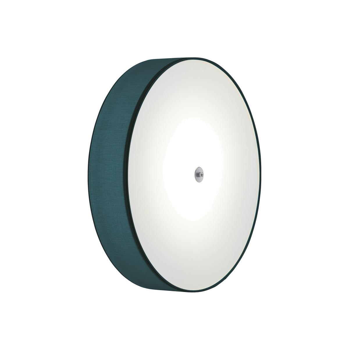 Design by Paolo Grasselli, 2004. By Modo. Luce. Low profile drum shade ceiling or wall light. Includes Plexiglas diffuser to shield direct view of the lamps. Provides diffused ambient illumination.