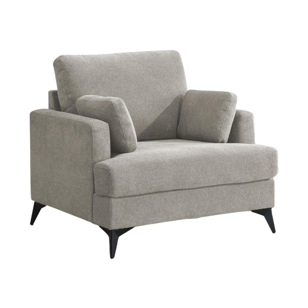 Unwind in style with this modern light grey oversized armchair, designed for both comfort and contemporary elegance. Upholstered in a soft, durable fabric, this generously sized lounge chair features deep seat cushions, wide armrests, and included bolster pillows for added support and relaxation. The neutral grey tone makes it a versatile addition to any living room, reading nook, or bedroom. Crafted with a strong wood frame and sleek black tapered legs, this accent chair offers stability with a minimalist aesthetic. Perfect for those who love to stretch out or cozy up with a book, this armchair brings modern luxury into your space without compromising on comfort.