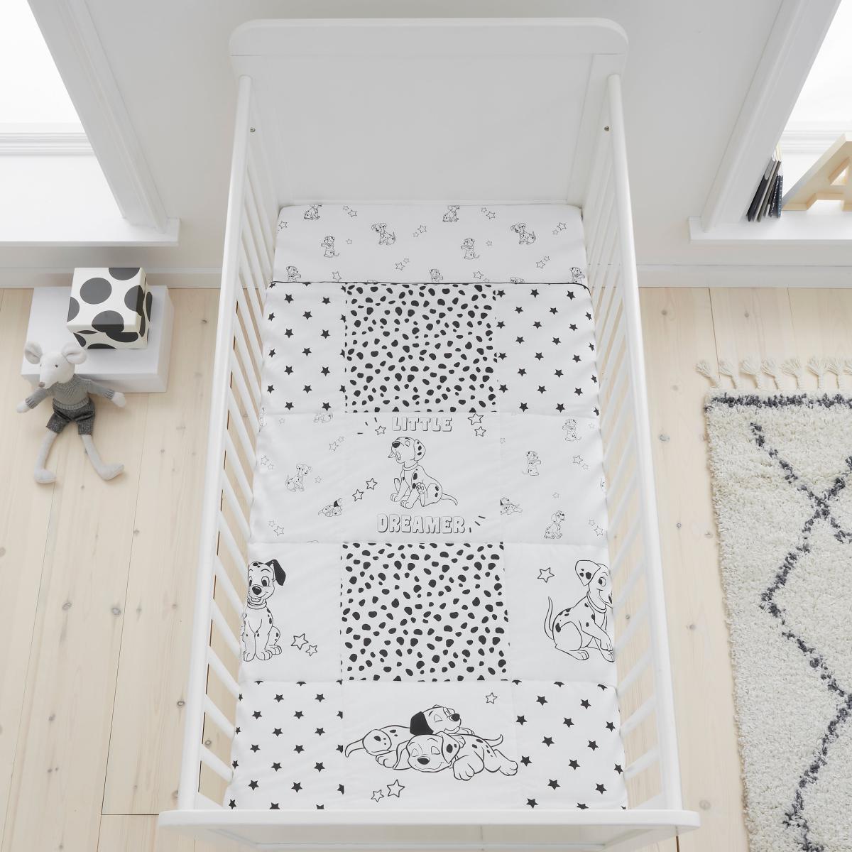 Disney 101 Dalmatians 100% Cotton 4 Tog Cot Bed Quilt Black and white