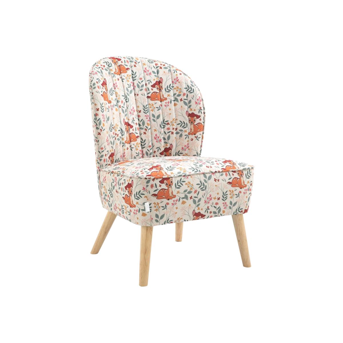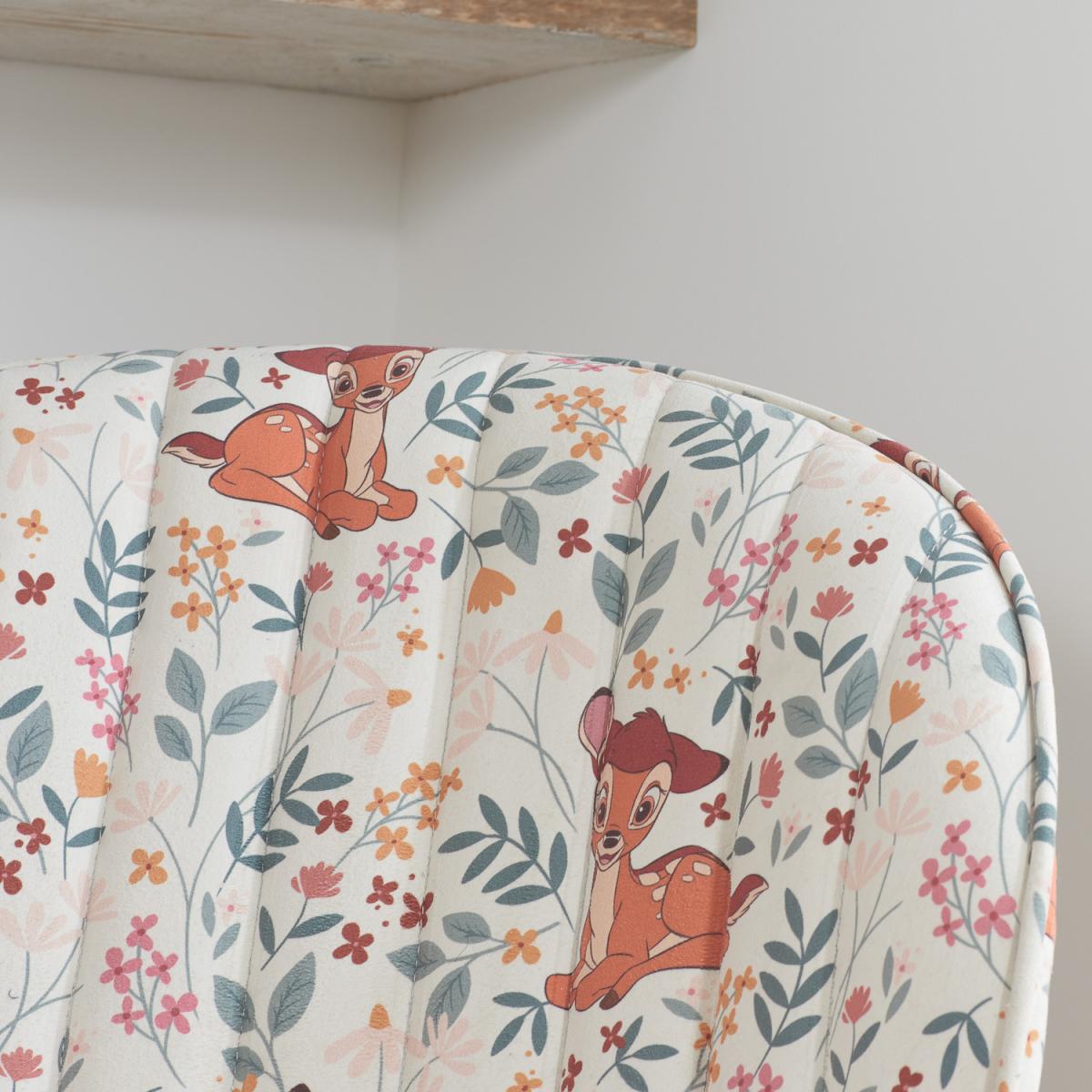 This distinctive Bambi accent chair has a classic design with a contemporary twist that will sit well in a variety of living spaces. This occasional chair features a pleated back featuring the Disneys iconic Bambi pattern. The maximum weight load for this chair is 110kg.