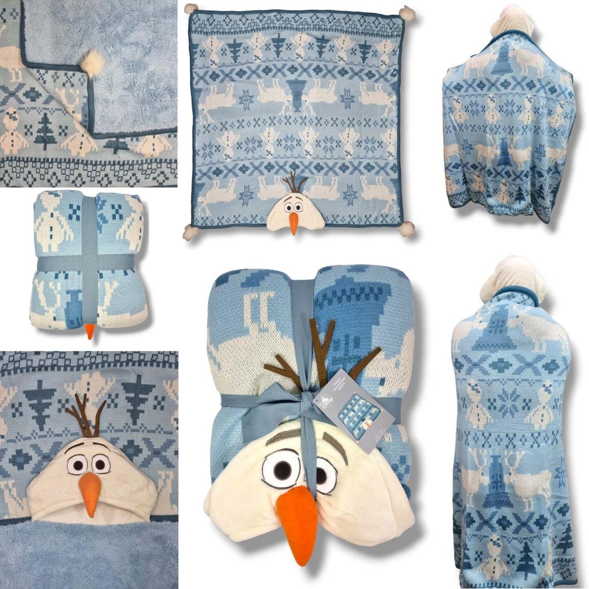 Introducing the enchanting Disney Boutique Wearable Hooded FROZEN OLAF Knitted Fleece Throw the perfect companion for cosy moments and Frozen fans alike. With its charming Olaf design and soft knitted fleece construction this throw combines warmth comfort and delightful style. Measuring 50 inches square this generously sized throw provides ample coverage allowing you to snuggle up and immerse yourself in a world of frosty adventures Crafted with attention to detail the throw features a hood designed to resemble Olaf's lovable face complete with his signature carrot nose and friendly smile. Its whimsical touch adds an element of fun to your lounging experience. Embrace the magic of Frozen and indulge in the comfort of this charming throw Get ready to experience cosy moments like never before with the Disney Boutique Hooded FROZEN OLAF Knitted Fleece Throw a must-have for Frozen enthusiasts of all ages.