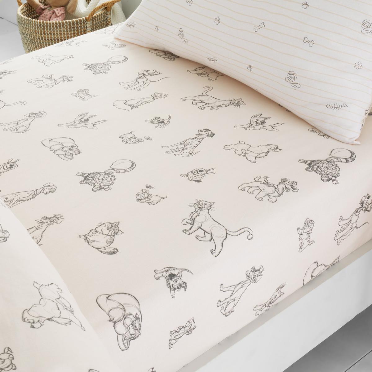 * Disney Cats & Dogs Design * Made from 100% Cotton * Available in Multiple Sizes Perfect for your little one's room, the Disney Cats & Dogs Cotton Fitted Sheet is dressed in a neutral tone; features iconic Disney characters; and is comprised from durable yet irresistibly soft cotton.