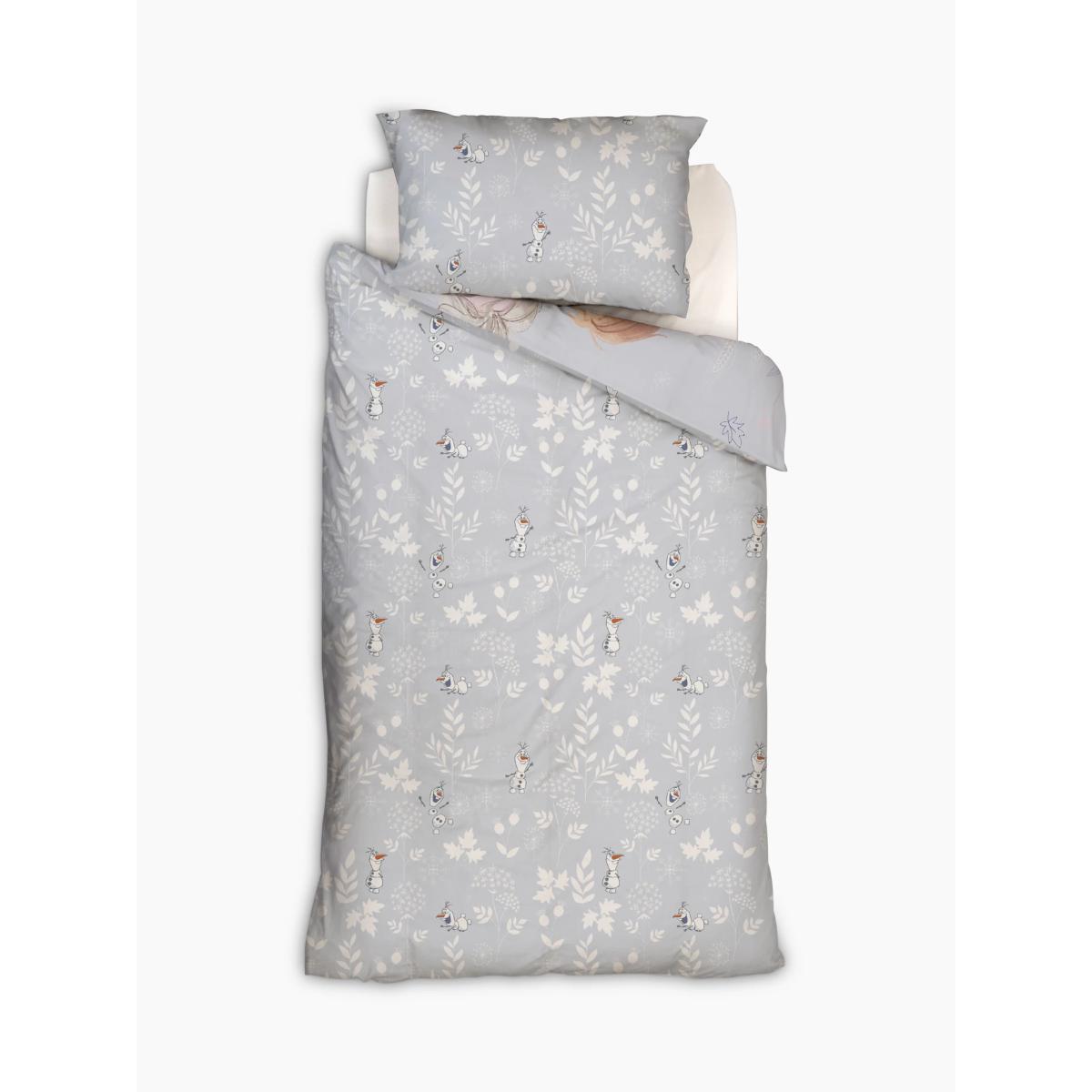 Princesses Anna and Elsa are back for Frozen 2 and feature on the front of this single duvet cover. Olaf's friendly face features on the reverse as well as the pillowcase, so you change up their sleep space each week. Made from soft, pure cotton that will help to keep them cool throughout the night, they'll love their magical bedtime setting.