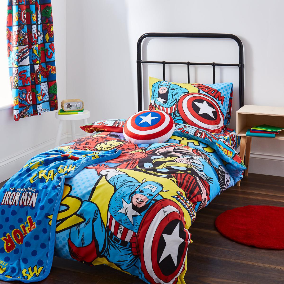 Disney Marvel Comics Duvet Cover and Pillowcase Set Blue, Yellow, White and Red
