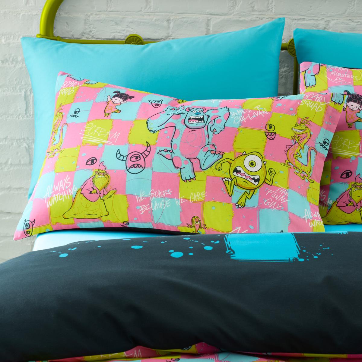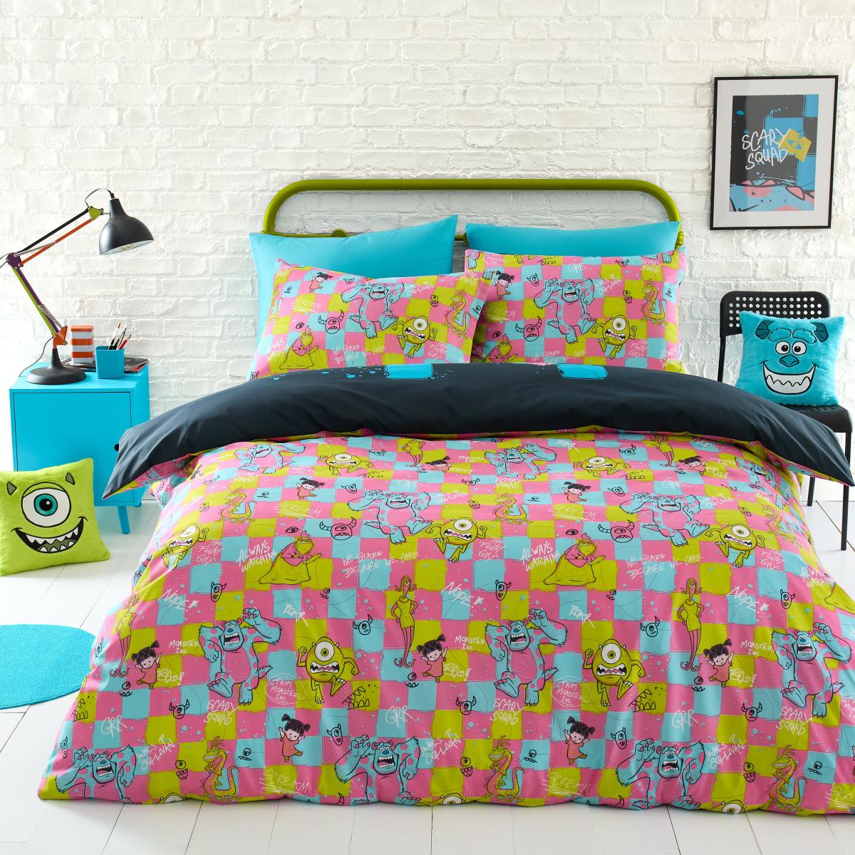 * Includes Standard Pillowcase(s) * Monsters, Inc. Inspired Design * Made from Durable Polycotton * Soft, Cosy, & Comfortable * Secure Button Fastening Add a splash of fun to your child's bedroom with the Disney Monsters, Inc. Reversible Duvet Cover and Pillowcase Set. Made from durable and easy-care polycotton, it offers two looks in one and is complete with a secure button fastening.