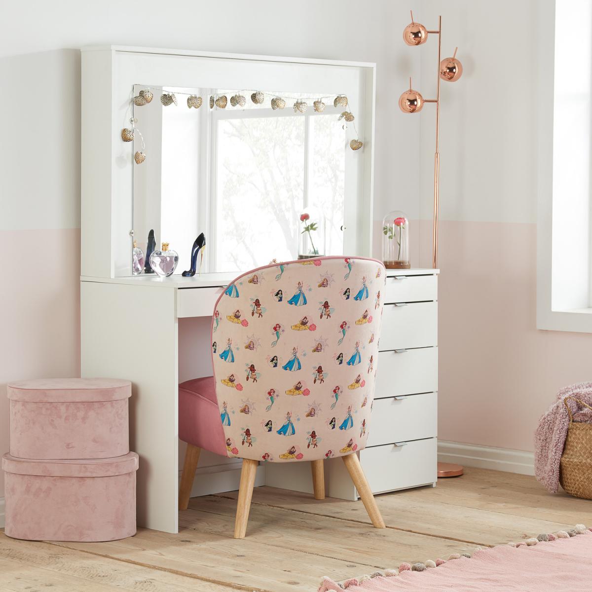 The Disney Princess pink chair is a playful yet practical addition to a child's bedroom or nursery. I love how its colour and design bring a touch of whimsy, making it a focal point without overwhelming the space. It works particularly well in rooms with soft pastel palettes or themed decor, adding charm and comfort. For styling, consider pairing it with a cosy throw or decorative cushions to create an inviting seating area. To keep the look cohesive, incorporate other elements in similar pink or princess-inspired motifs, and position it near a petite desk or reading nook for both style and function.