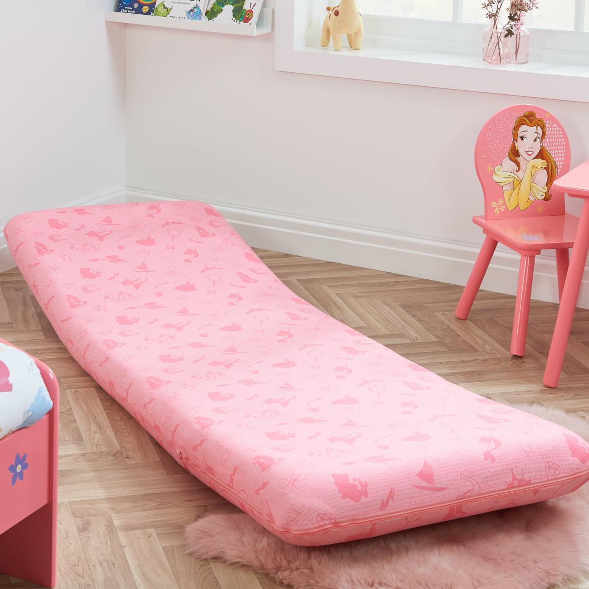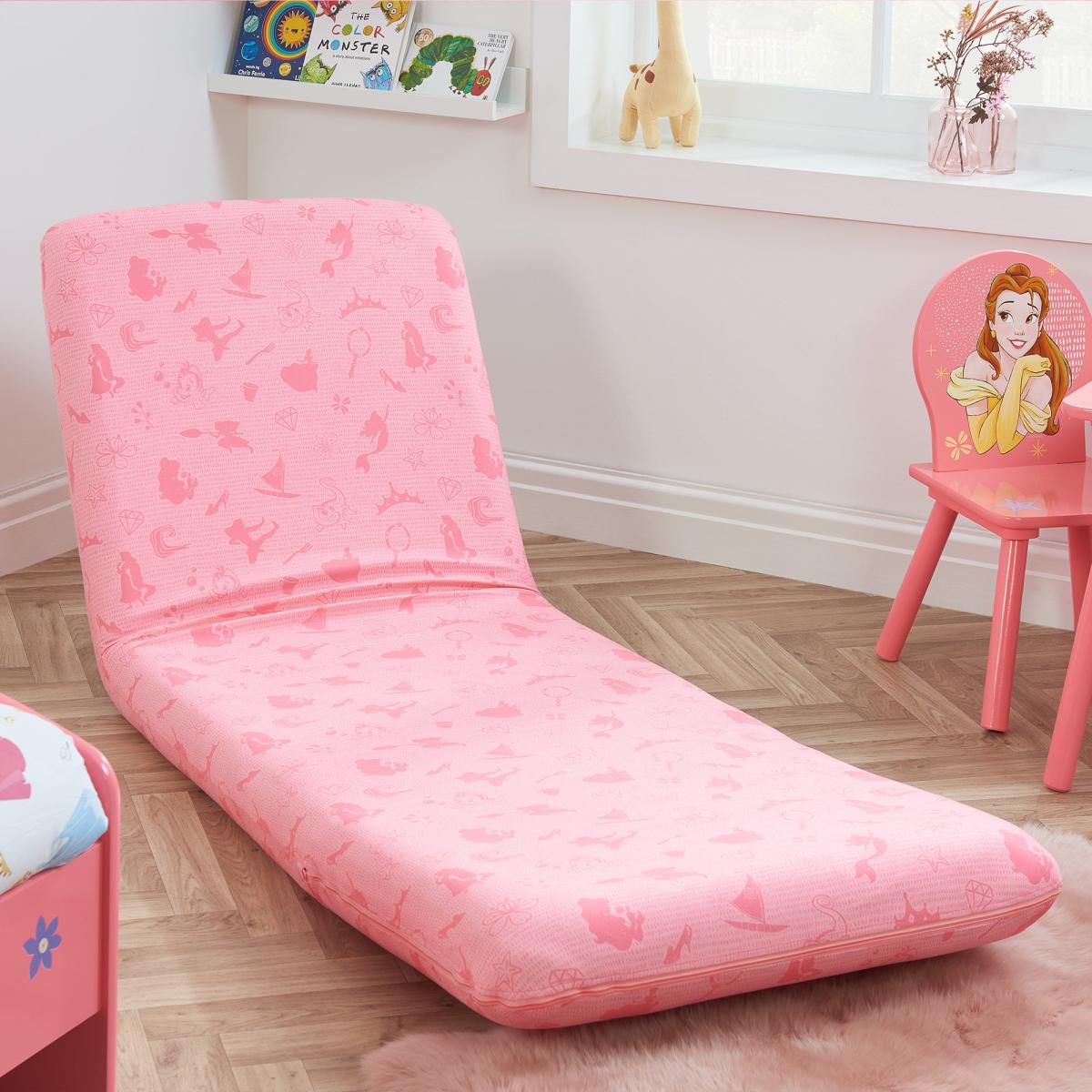 Enter the enchanting world of Disney Princesses with the Disney Princess Fold Out Bed Chair. Featuring silhouettes of beloved Disney Princesses, this chair transforms from a comfortable seat to a single bed in an instant. Compact and space-saving, it's the perfect choice for a child's room, ensuring that sleepovers are always a magical experience.