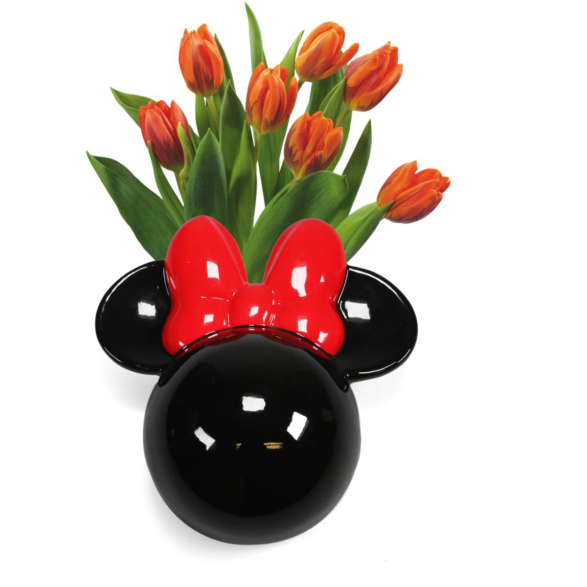 Celebrate your love of Disney with this shaped wall vase. Moulded and painted to perfectly resemble Minnie Mouse, this wall vase is suitable for plants and flowers, or even toiletries, stationery or tools. It makes the perfect gift for the Disney fan in your life. Number 09 in our wall vase series collect them all!